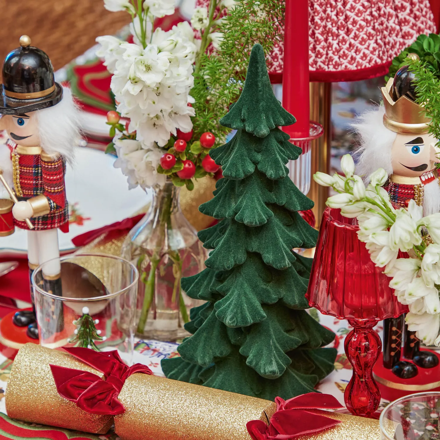 Our Forest Green Flocked Fir Trees are a contemporary take on classic Christmas decor. They come in a set of two and have rich, velvety flocking that brings depth and charm to your holiday tablescape.