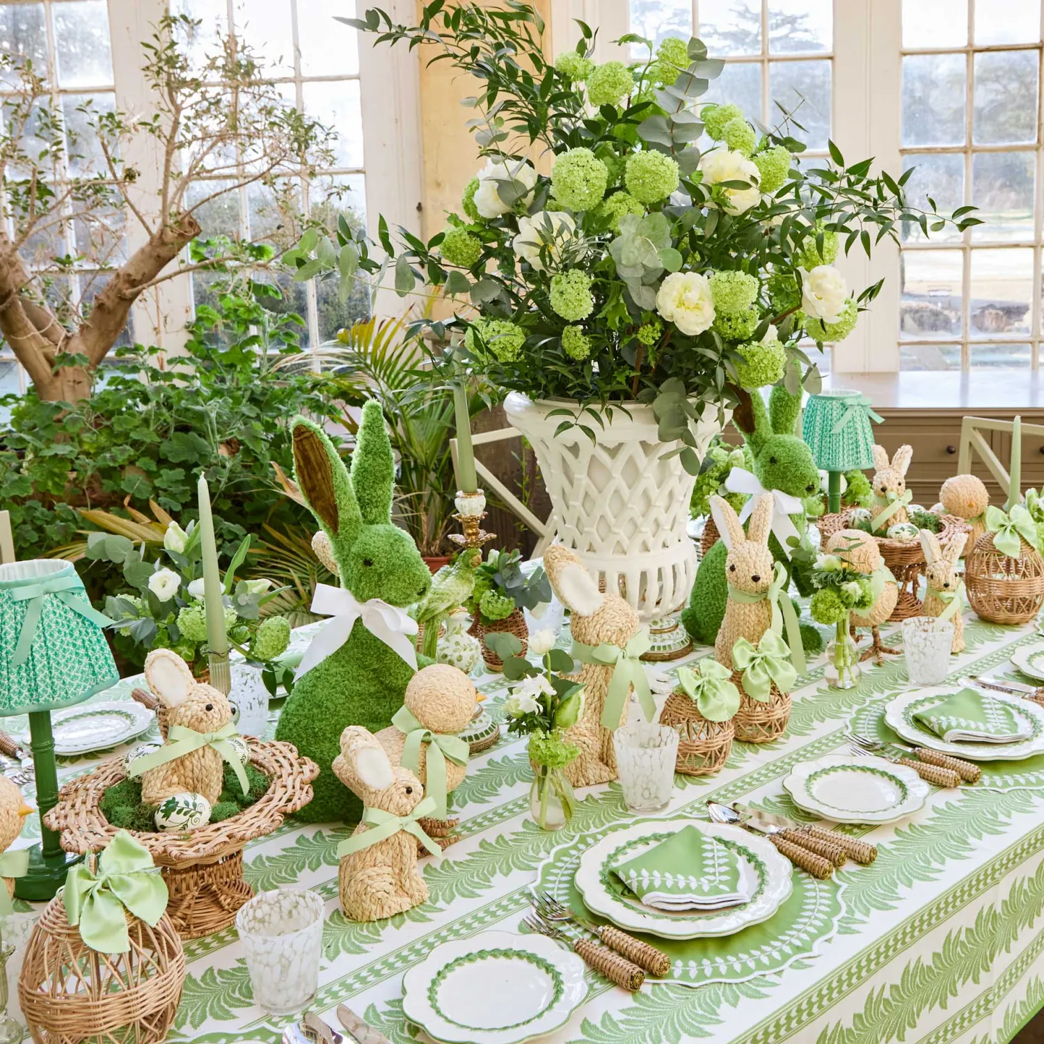 Inspired by the graceful greens of spring, our Green Laurel Placemats are perfect for adding season joy to your tables. Coming in a set of four, these linen pieces are embellished with a decorative white, laurel trim around the edge and will pair perfectly with coordinating accents.