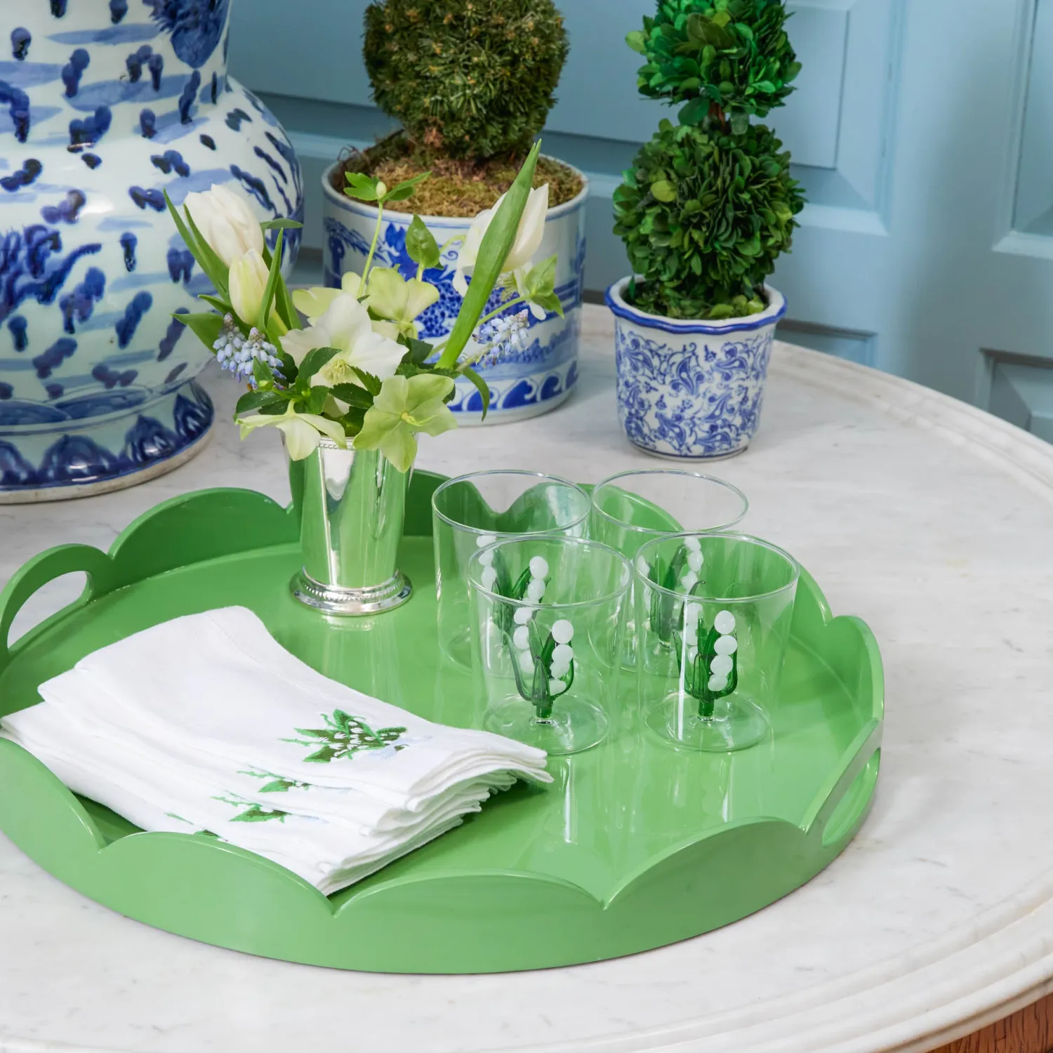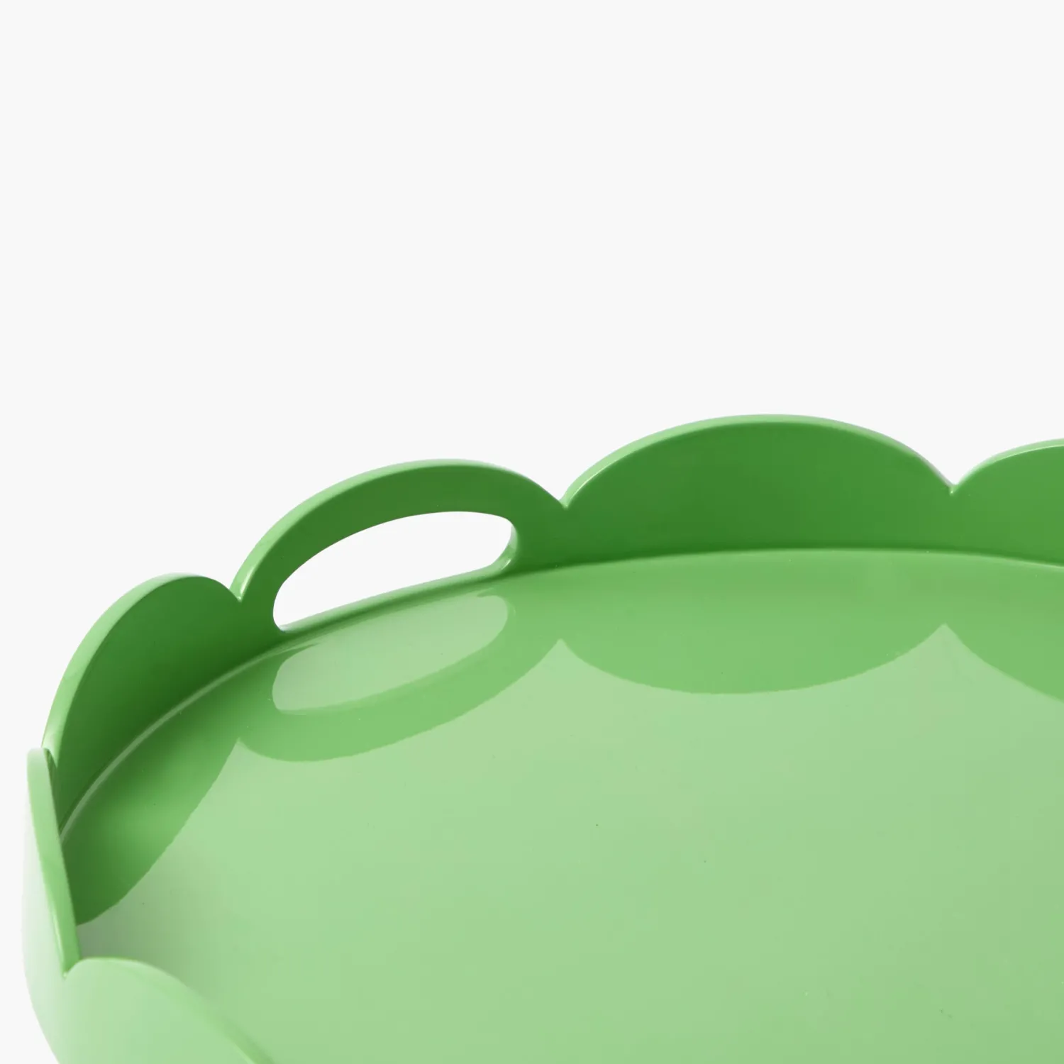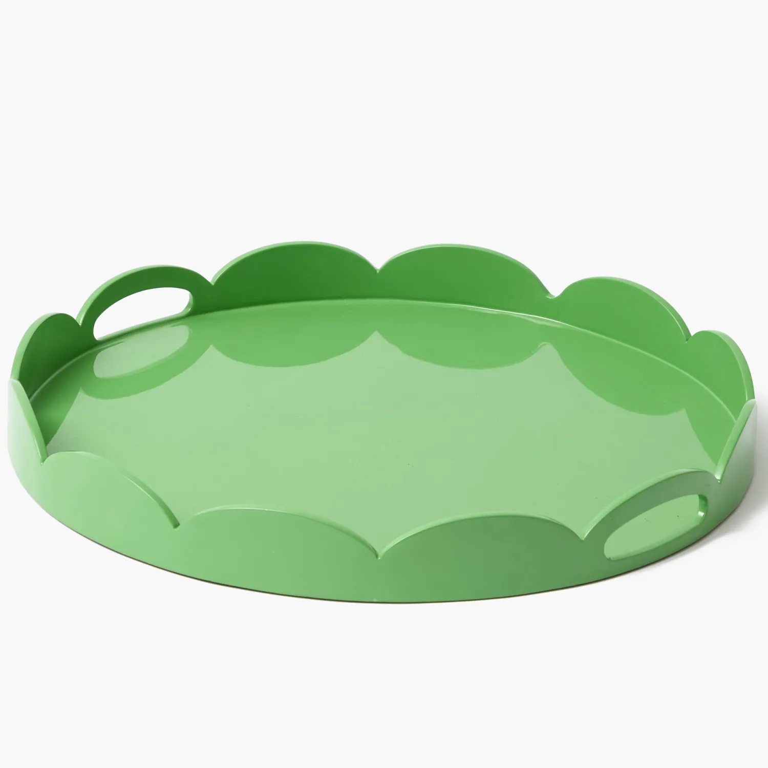 Our Green Scalloped Lacquer Round Tray is a statement piece designed to look as good serving your guests as it does on y…