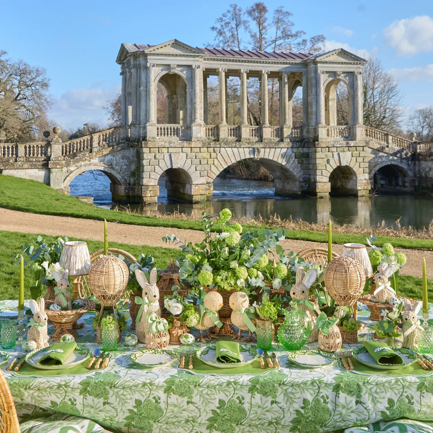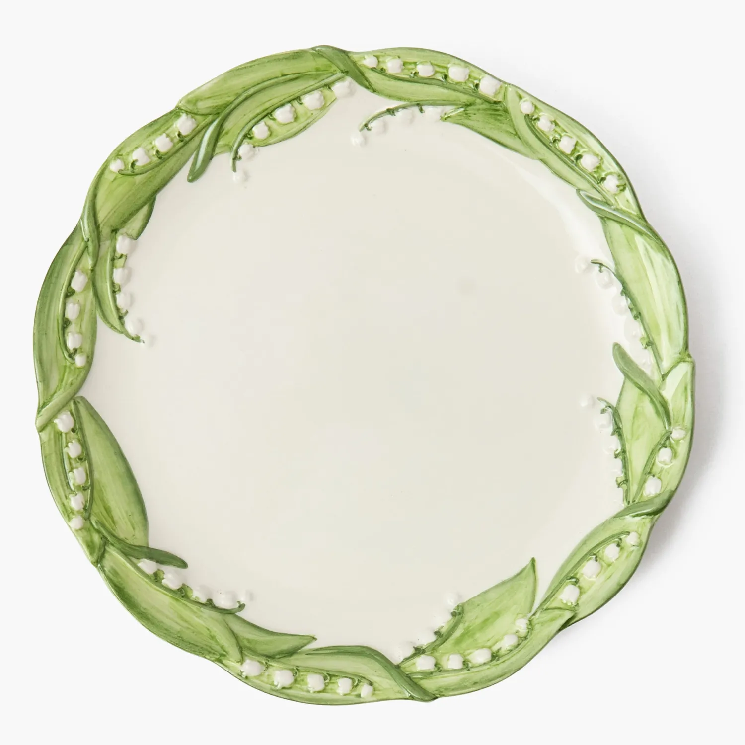 Pretty and versatile in gentle green tones, this ceramic plate comes as a set with our matching Lily Of The Valley Starter Plate, Green Ikat Tablecloth, and Serena Green Appliqué Placemats.