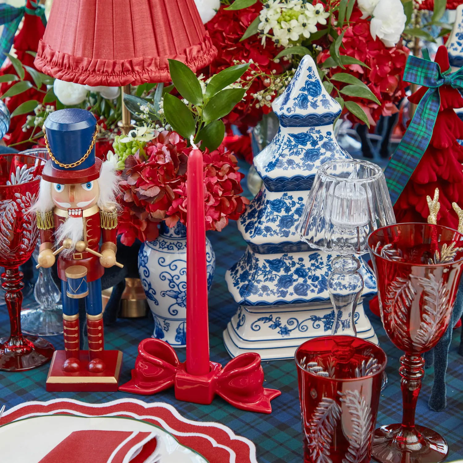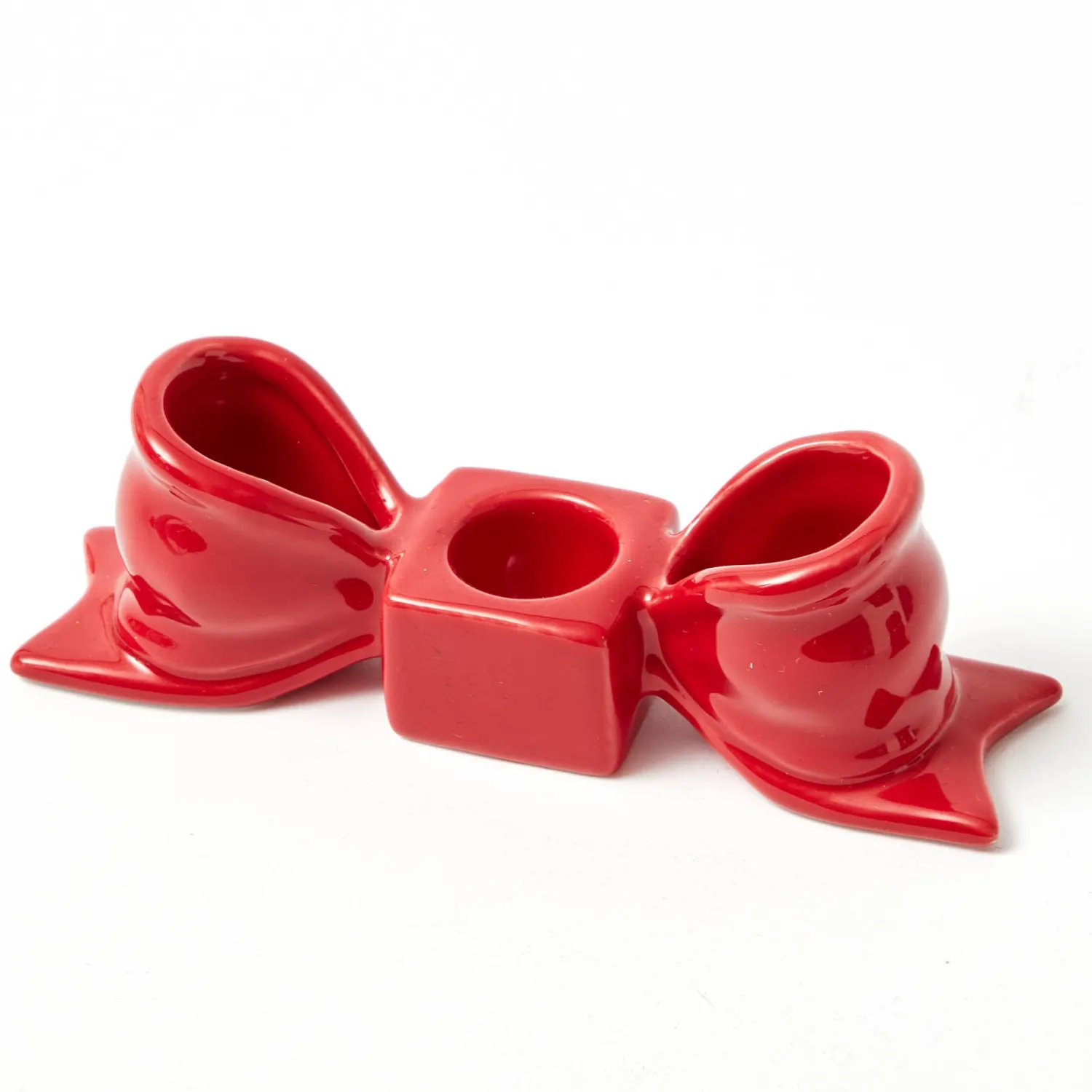 Embrace the spirit of the season with our Red Ceramic Bow Candleholder. This pair of two ceramic bow candle holders will enhance any table setting and are perfect for creating a soft and inviting ambience.