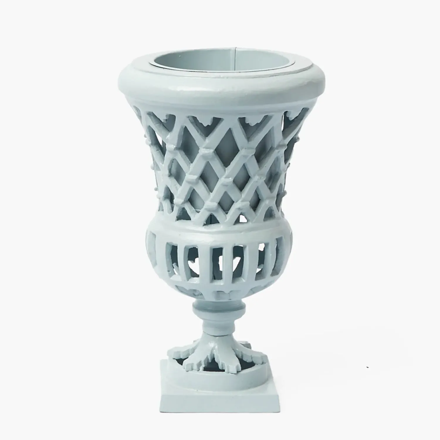 Create a spectacle on your side tables with our Small Adelaide Blue Lattice Urn. This exquisite pastel blue piece has been designed in metal and features a removable inner planter – ideal for changing up your fresh floral arrangements.