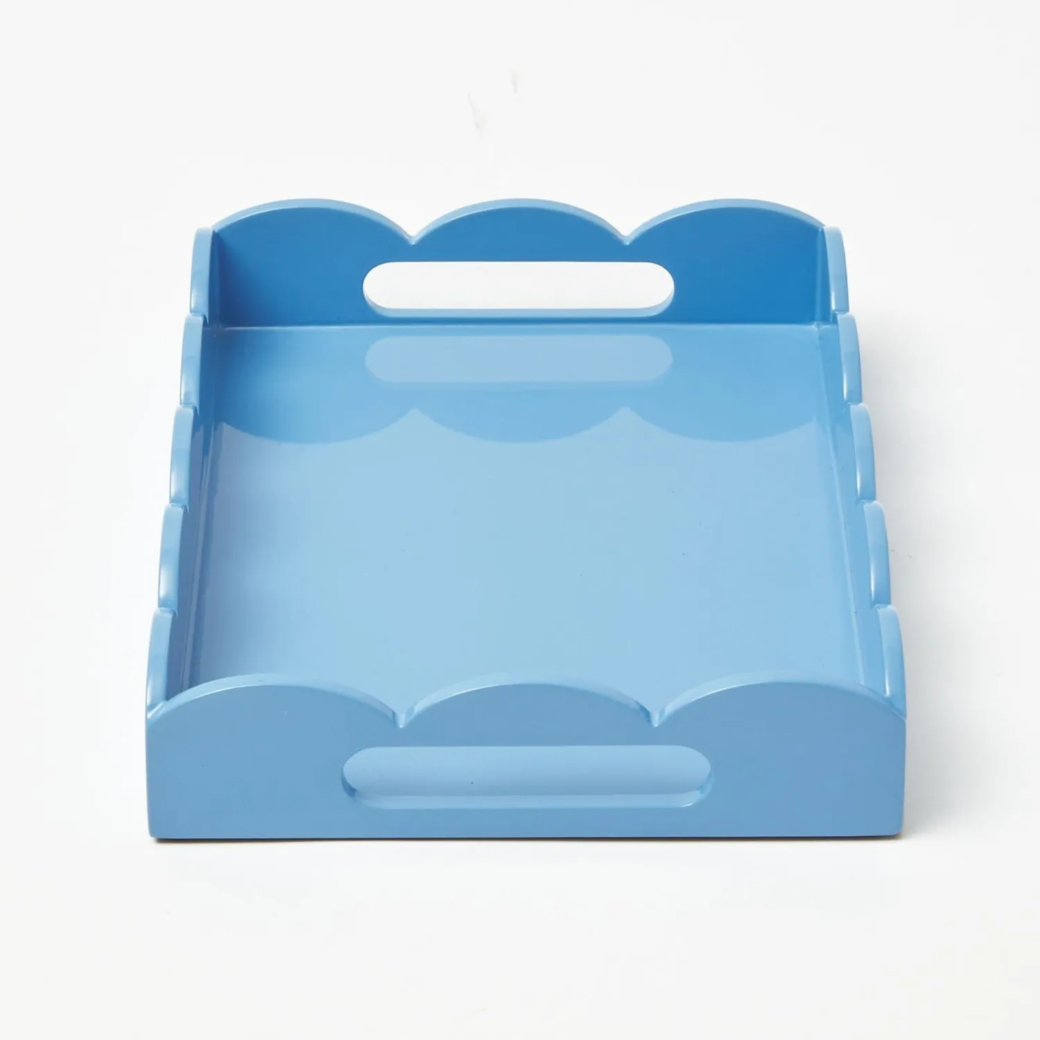 Our Small Blue Lacquer Scalloped Tray is the perfect way to inject colour into your serving style. With its scalloped ed…