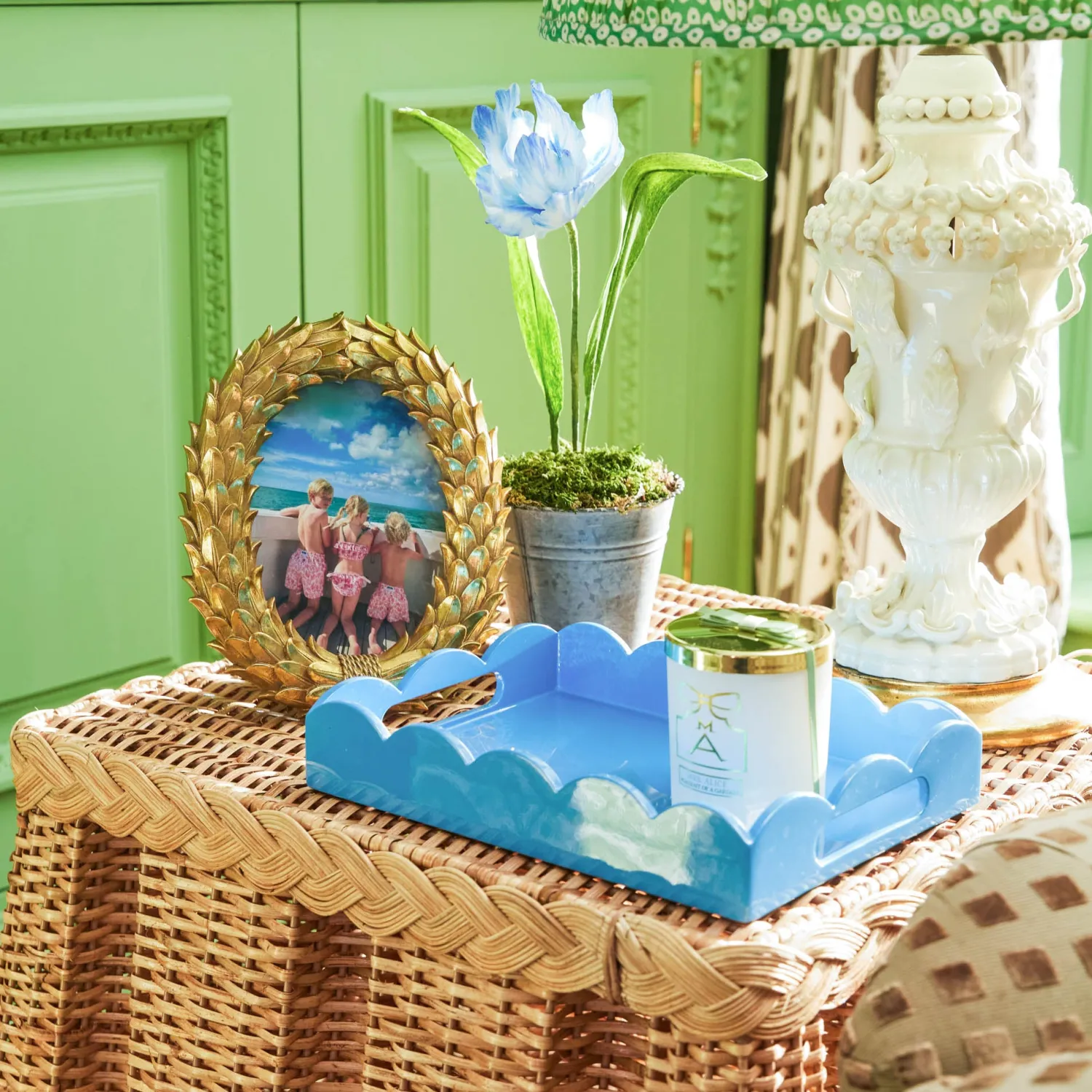 Our Small Blue Lacquer Scalloped Tray is the perfect way to inject colour into your serving style. With its scalloped edges and beautiful blue hue, this lacquer tray will look as good serving drinks as it would displaying decorative accents.