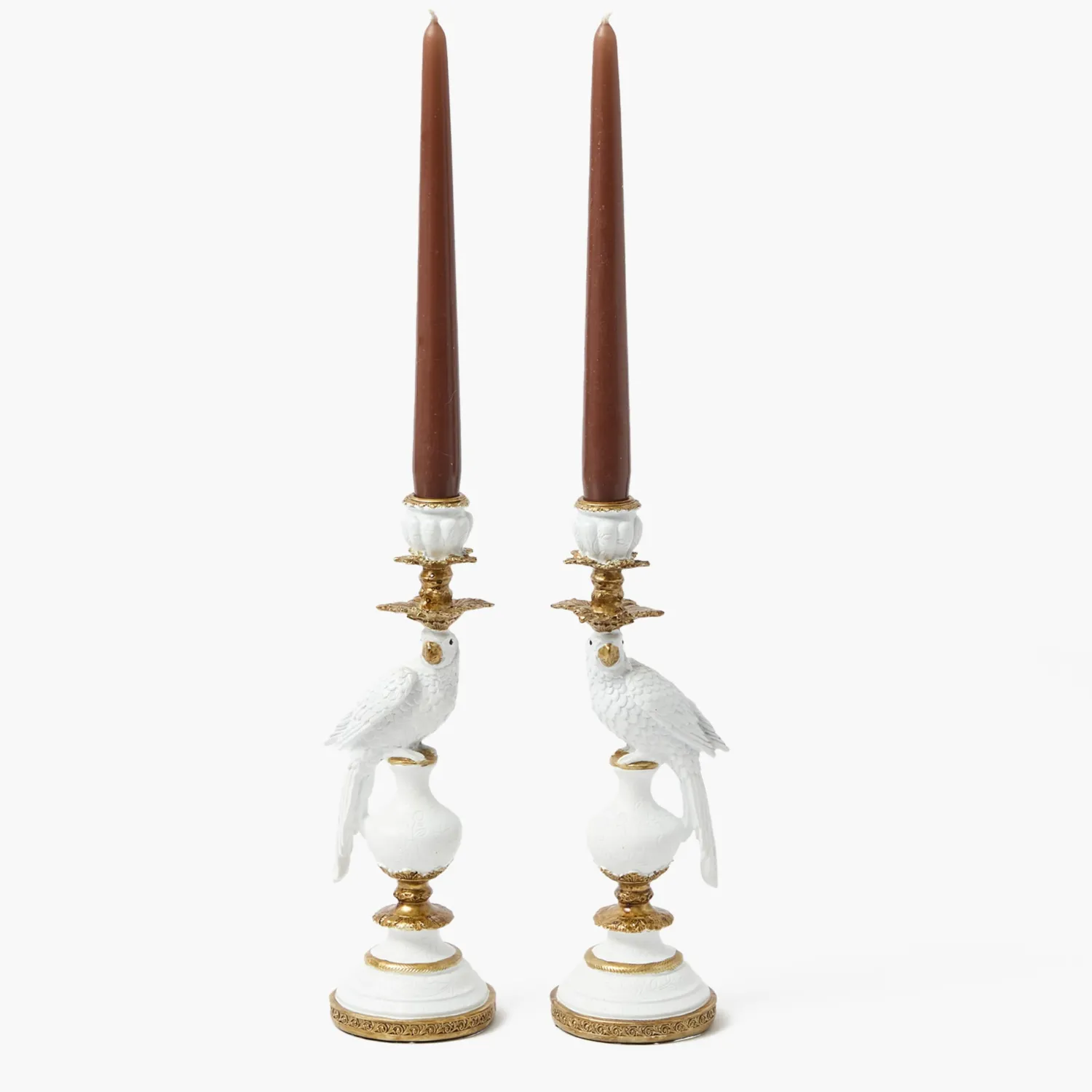Discover our Small White Parrot Candle Holders. Coming in a pair, these candle holders are perfect for framing centrepieces or gracing the mantel.