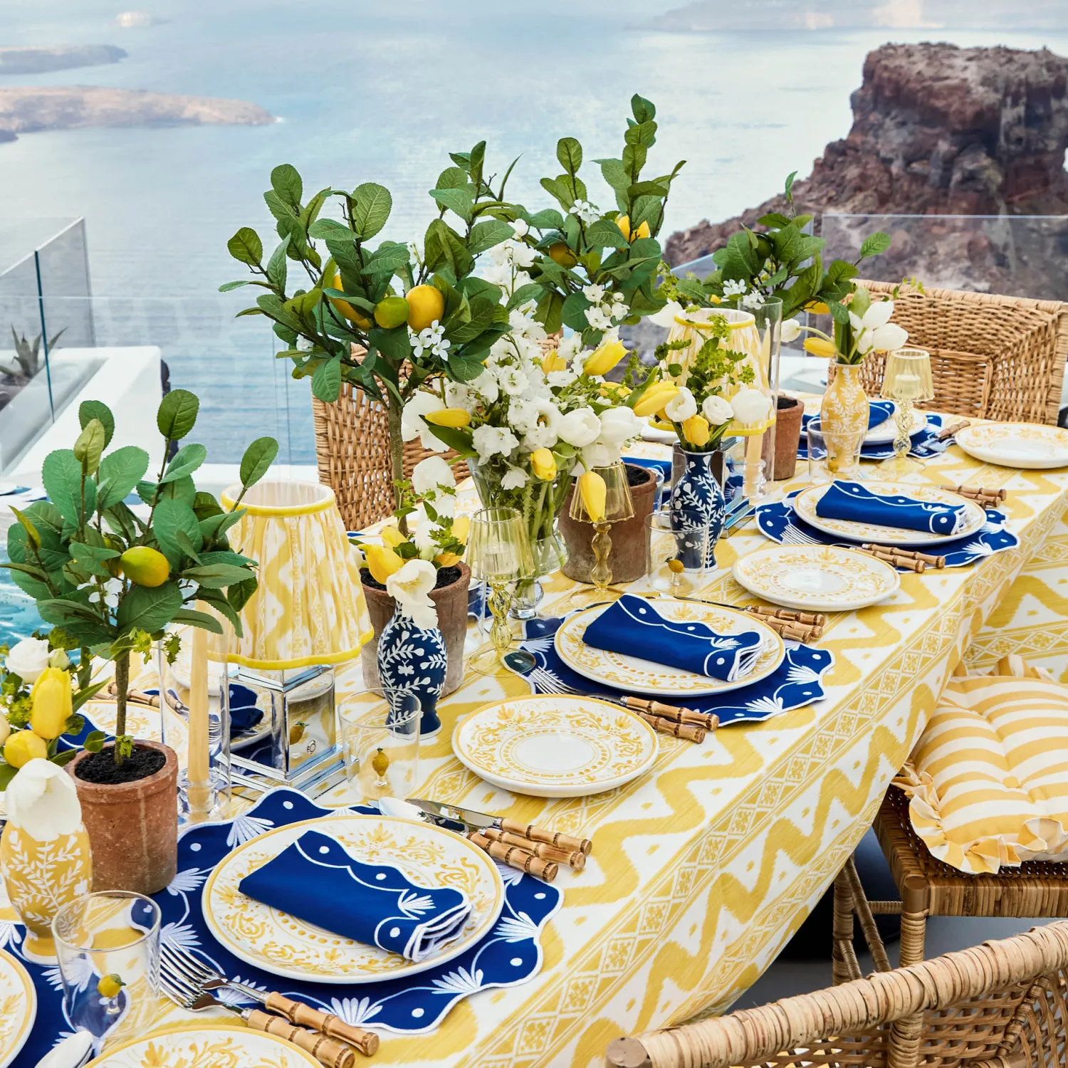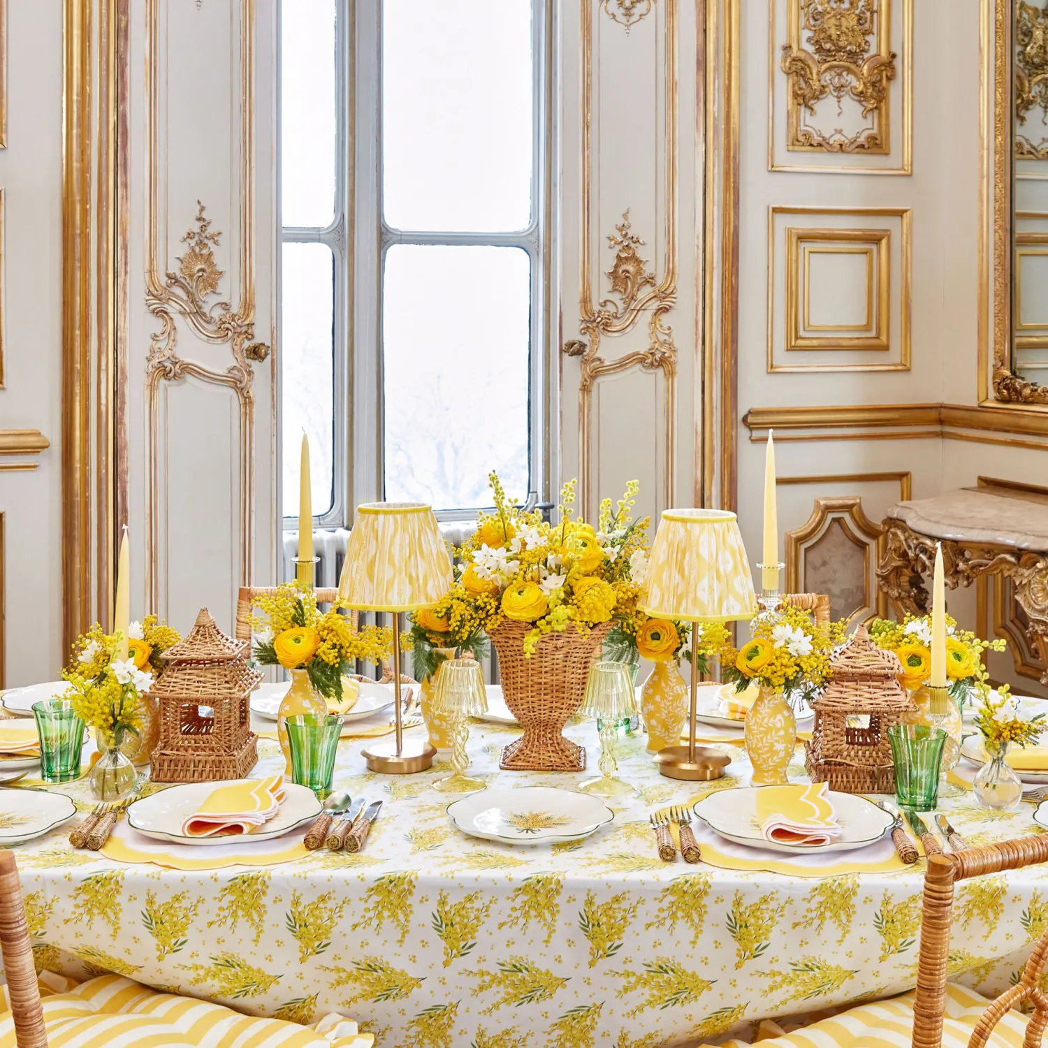 Elegant and chic, it features Serena Fresson’s Ikat Fabric in yellow with matching velvet trim.