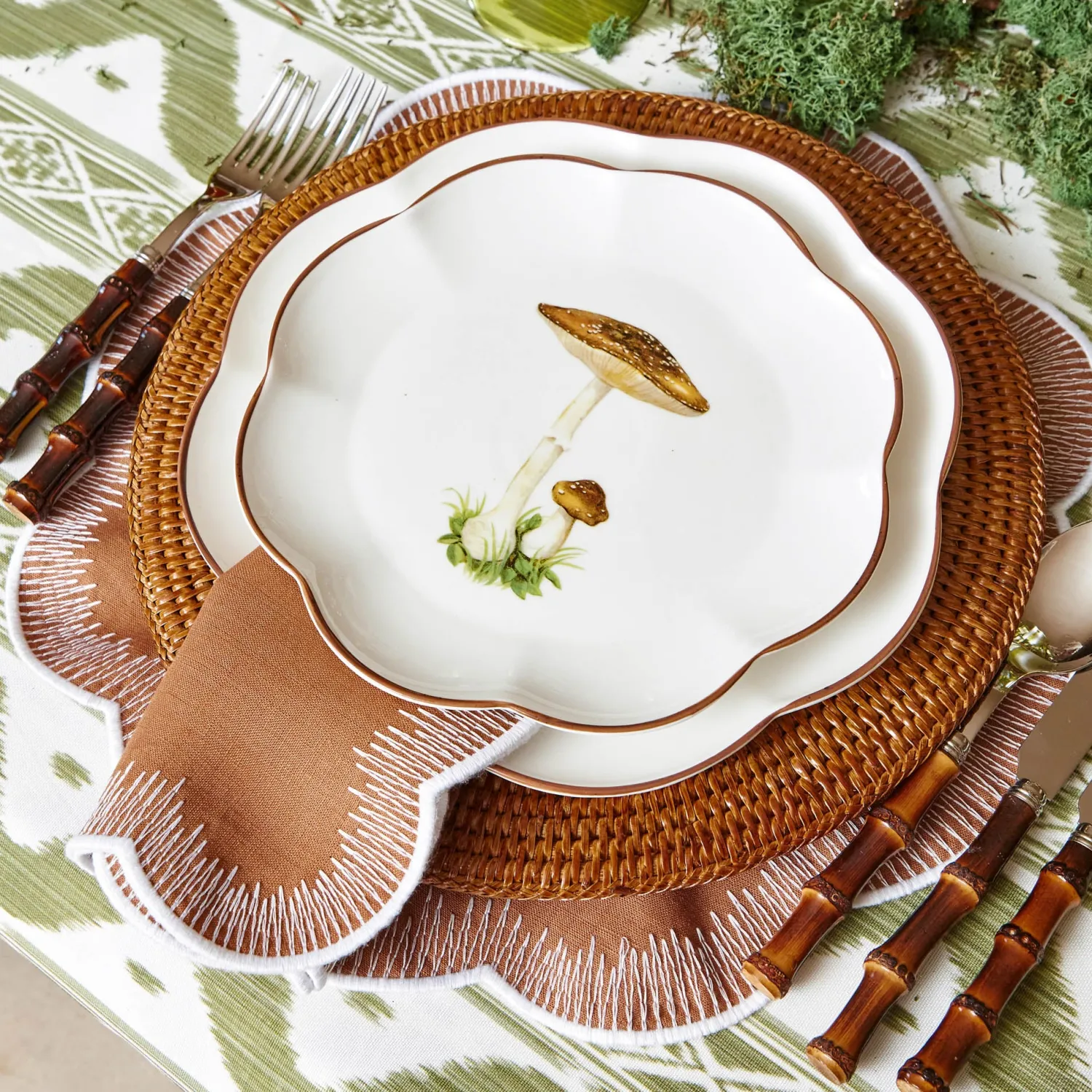 Indulge in rich earthy tones this fall with our Alathea Caramel Placemats. Expertly crafted from pure linen and designed with flame stitch embroidery, this four-person set is perfect for your Halloween or thanksgiving table.