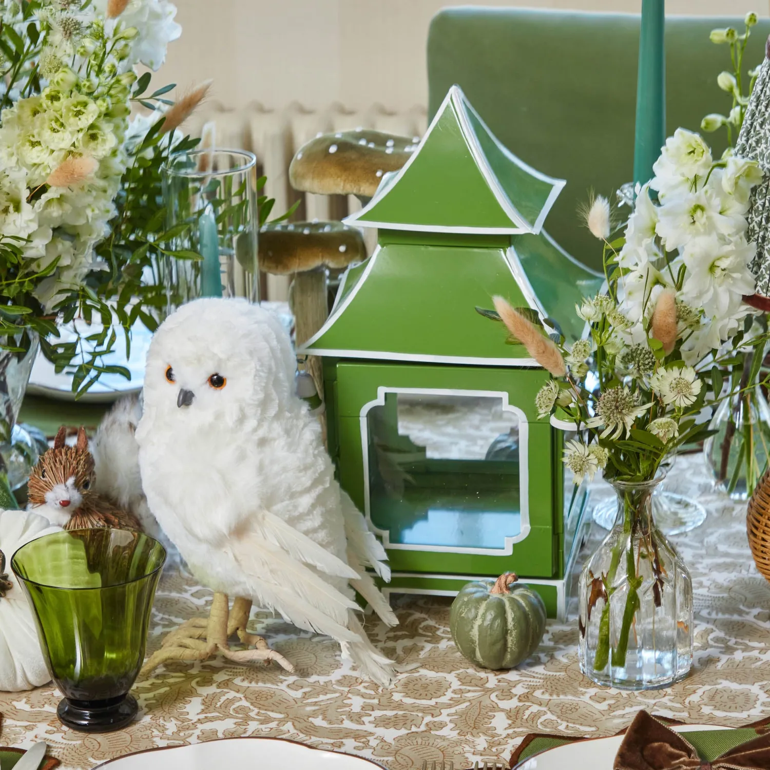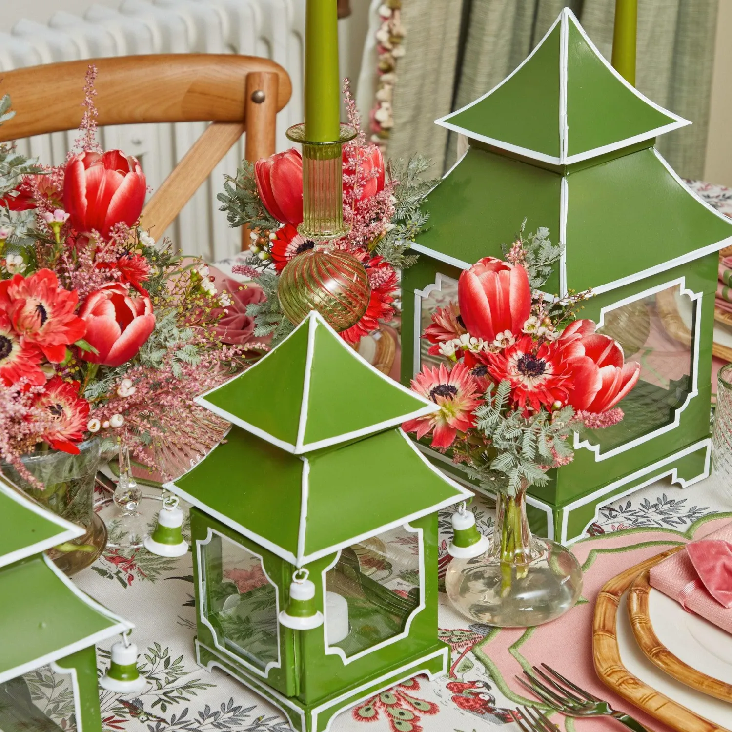 Coming in a classic shade of apple green with white accents, our Apple Green Pagoda Lantern is a timeless way to bring character to your table. Carefully crafted from metal and glass, this piece is suitable for our pillar candles.