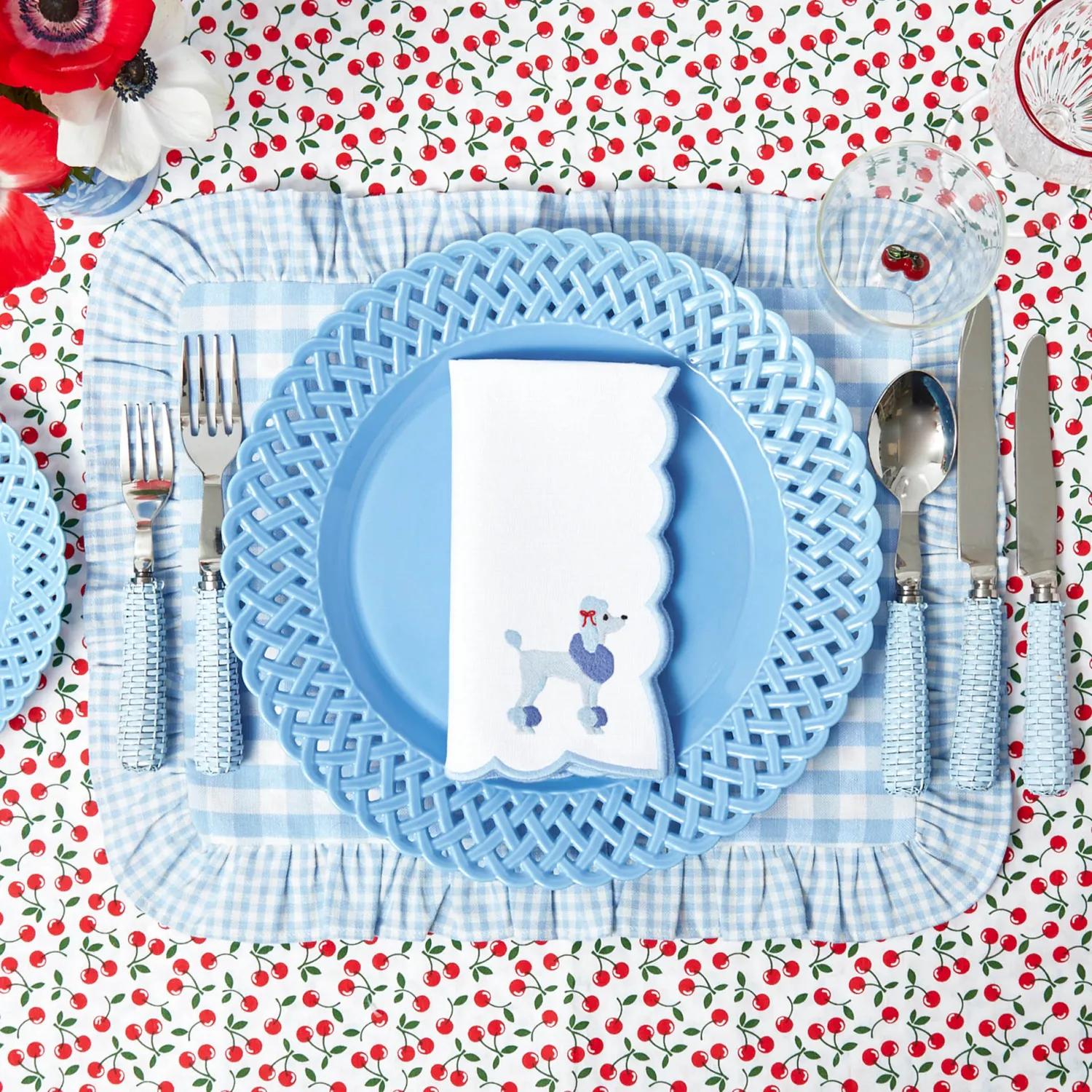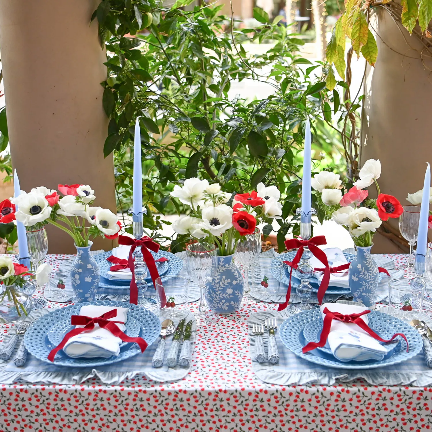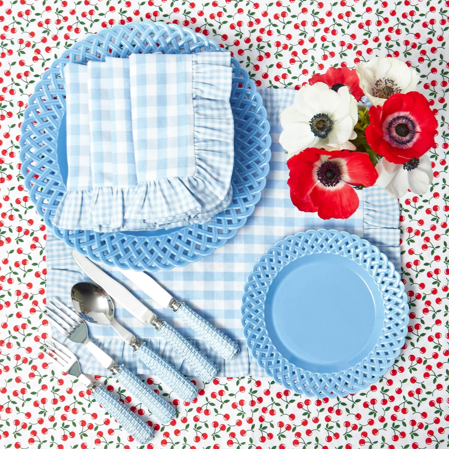 Pairs perfectly with our Blue Gingham Ruffle Napkins, Blue Basketweave Dinner Plates and Eden Blue Candle Holder.