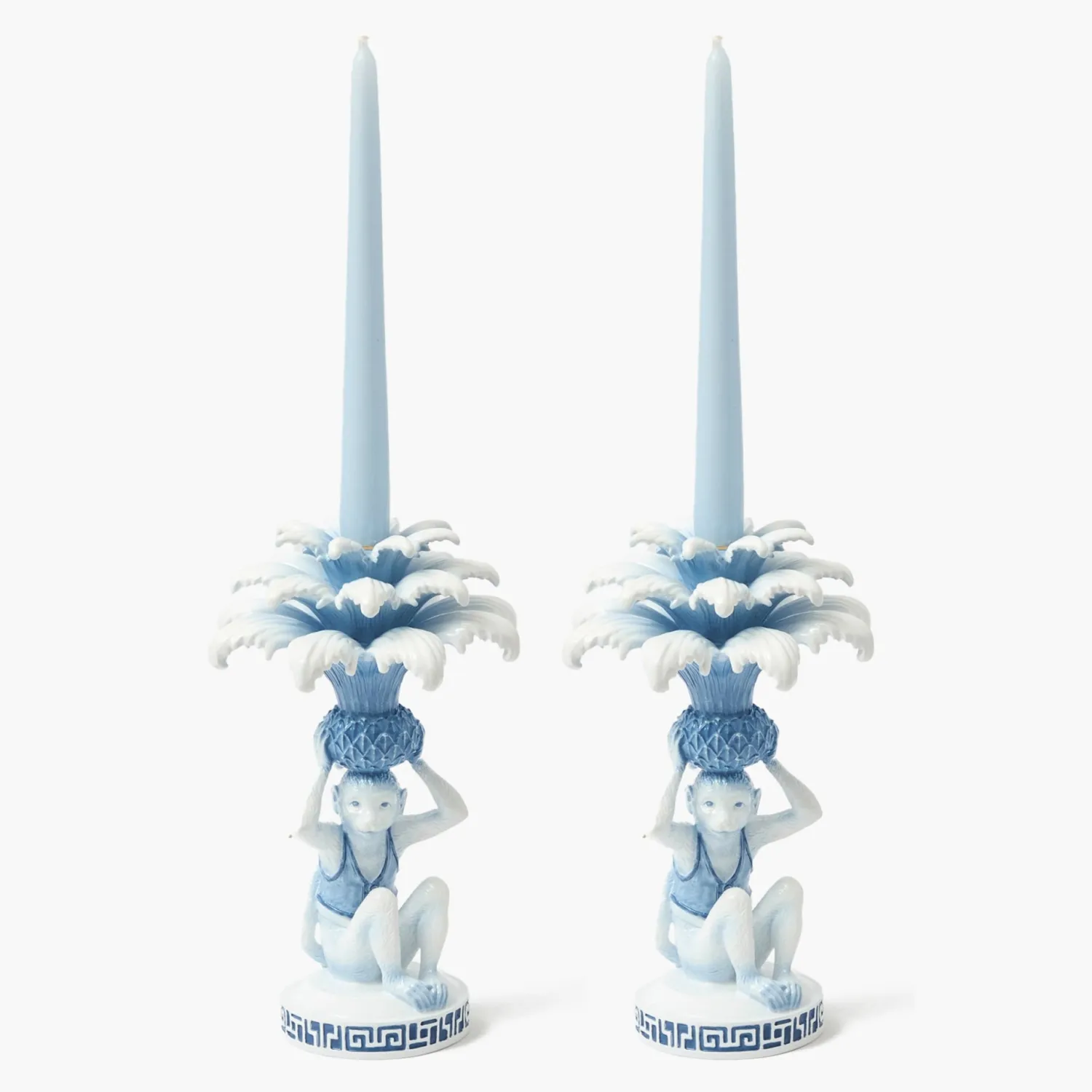 Indulge in the whimsical this season with our Blue Monkey Candleholders. This pair of cheeky monkeys comes in a soft azu…