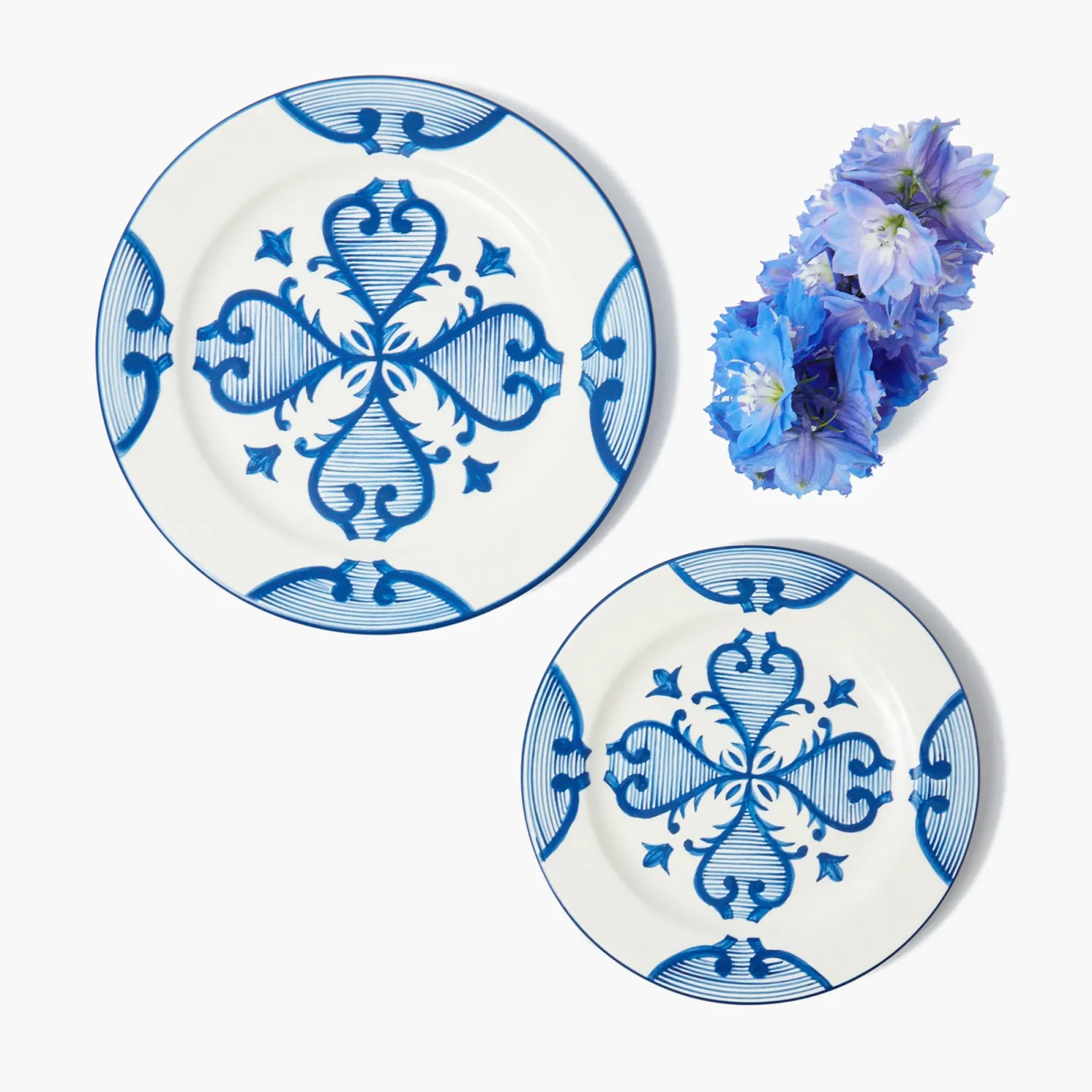 Our Blue Quatrefoil Starter Plate is a sophisticated way of serving your appetisers. The chinoiserie-inspired design has ben created using gorgeous shades of blue against its white ceramic base.