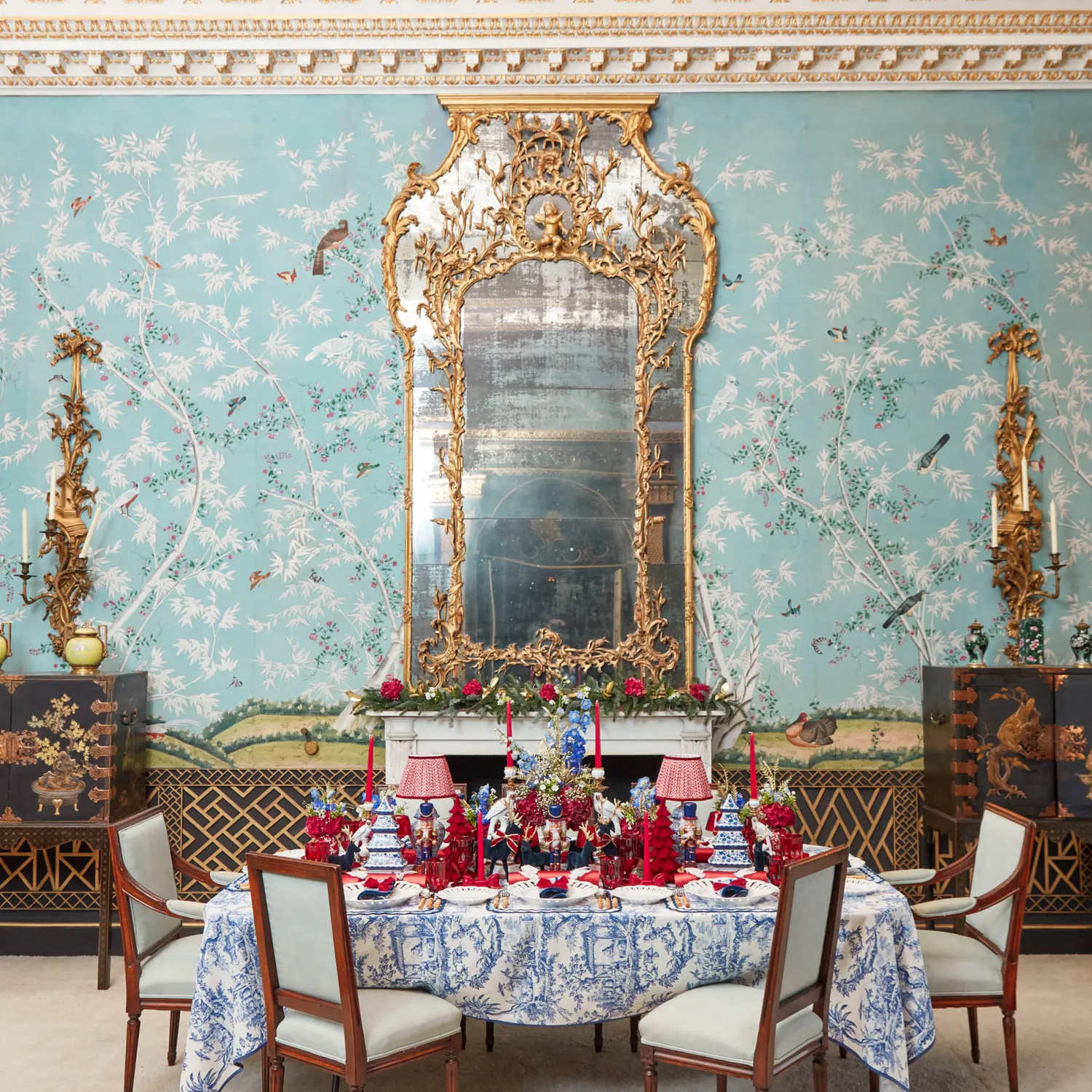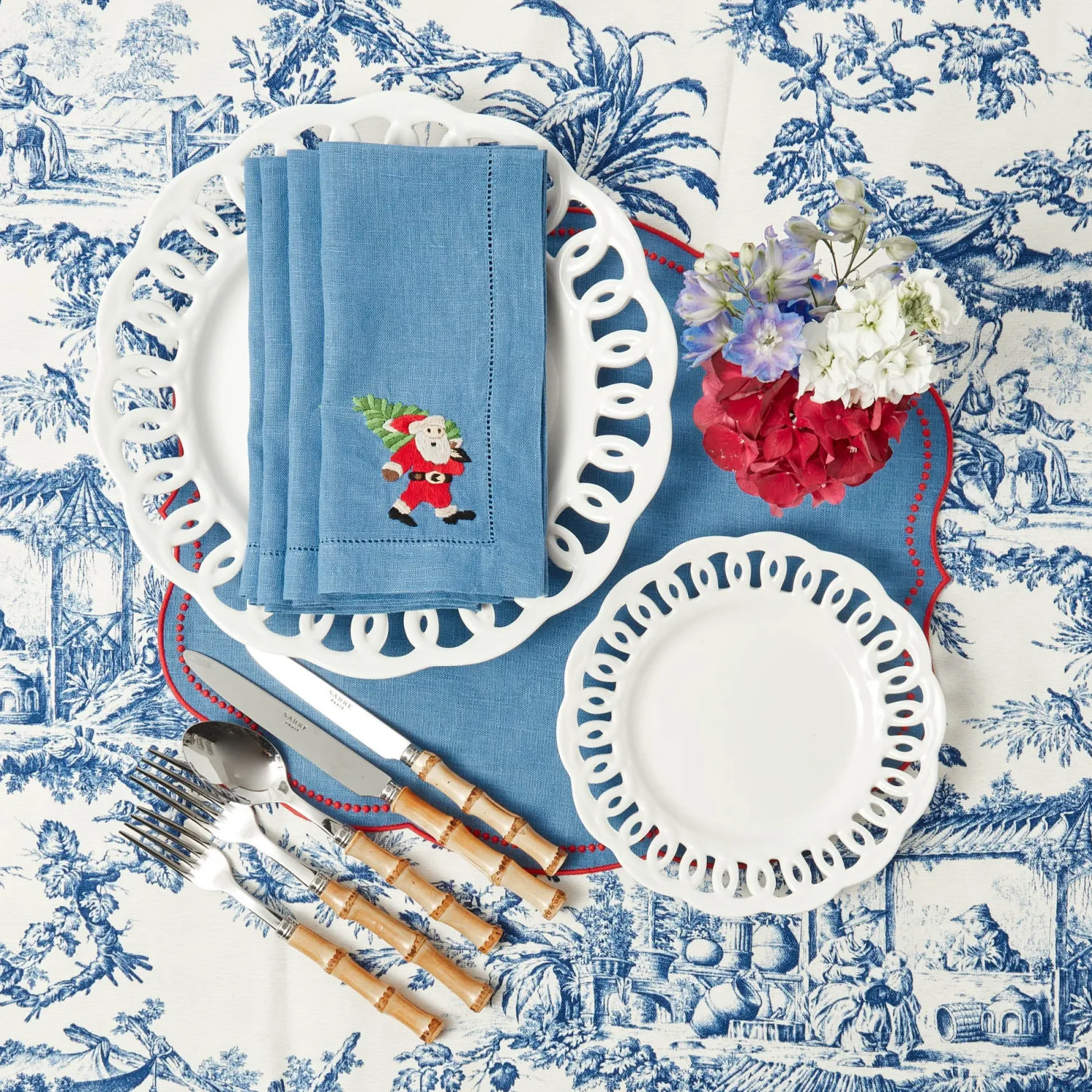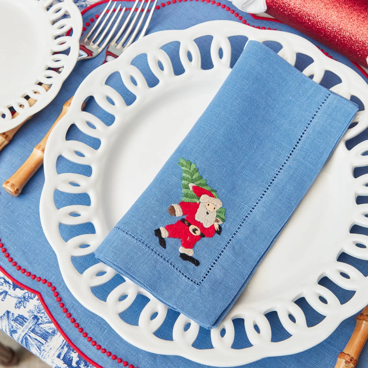 These festive blue 100% linen napkins come with a merry hand embroidered Father Christmas design and a smart hem stitched border.