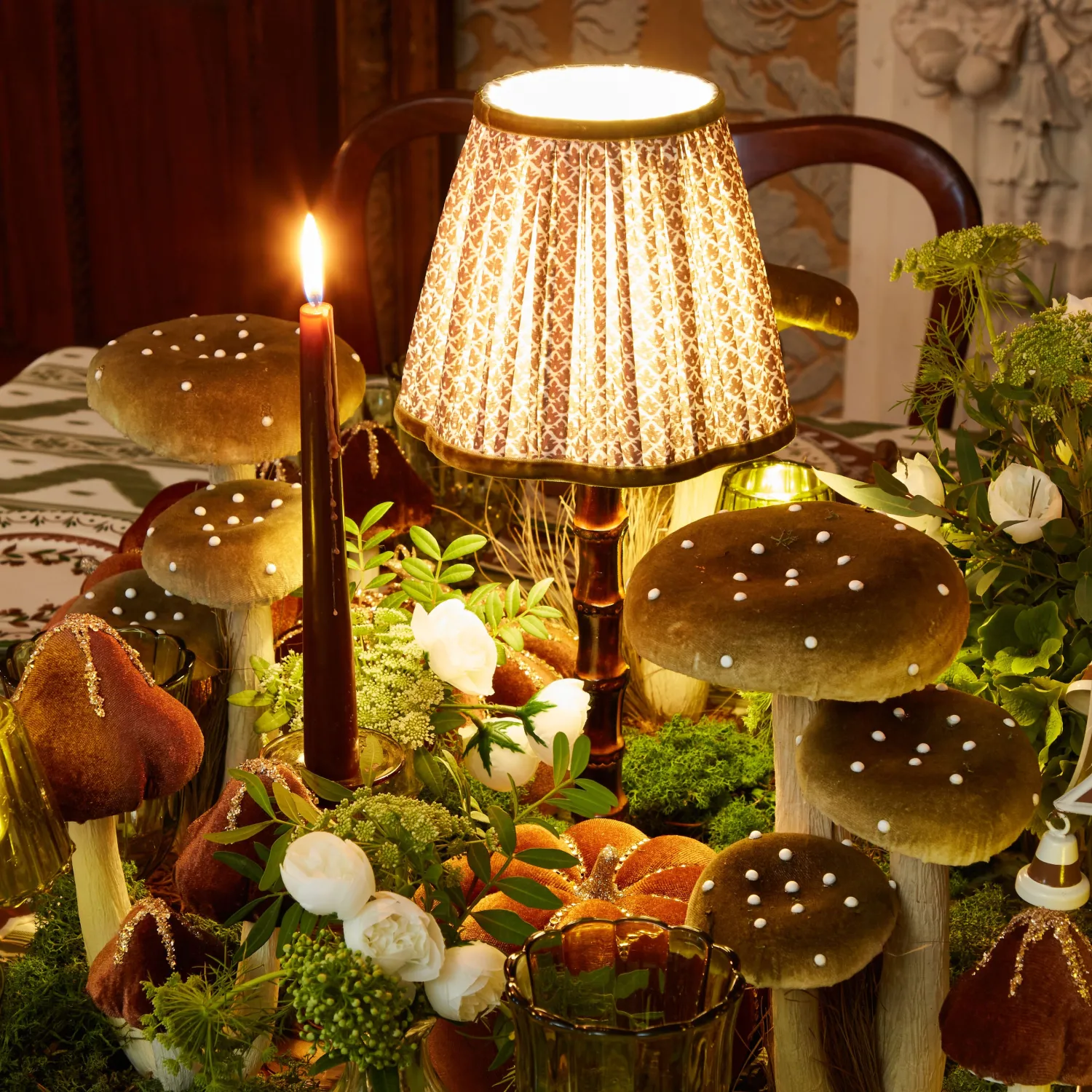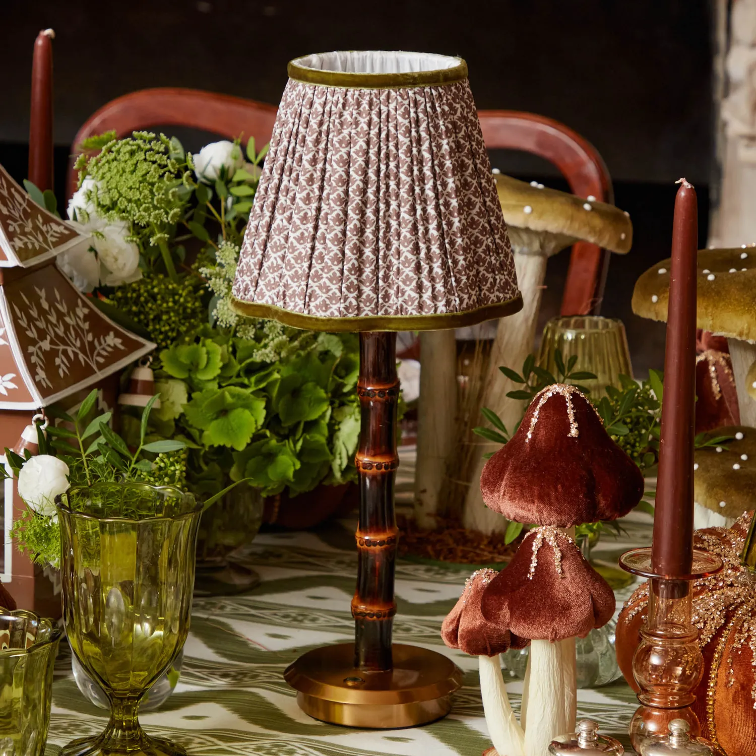 Our Burnt Bamboo Rechargeable Lamp is a classic piece, perfect for your Thanksgiving and fall tables. For a special touch, we’ve paired it with our earthy Chocolate and Olive Lampshade.