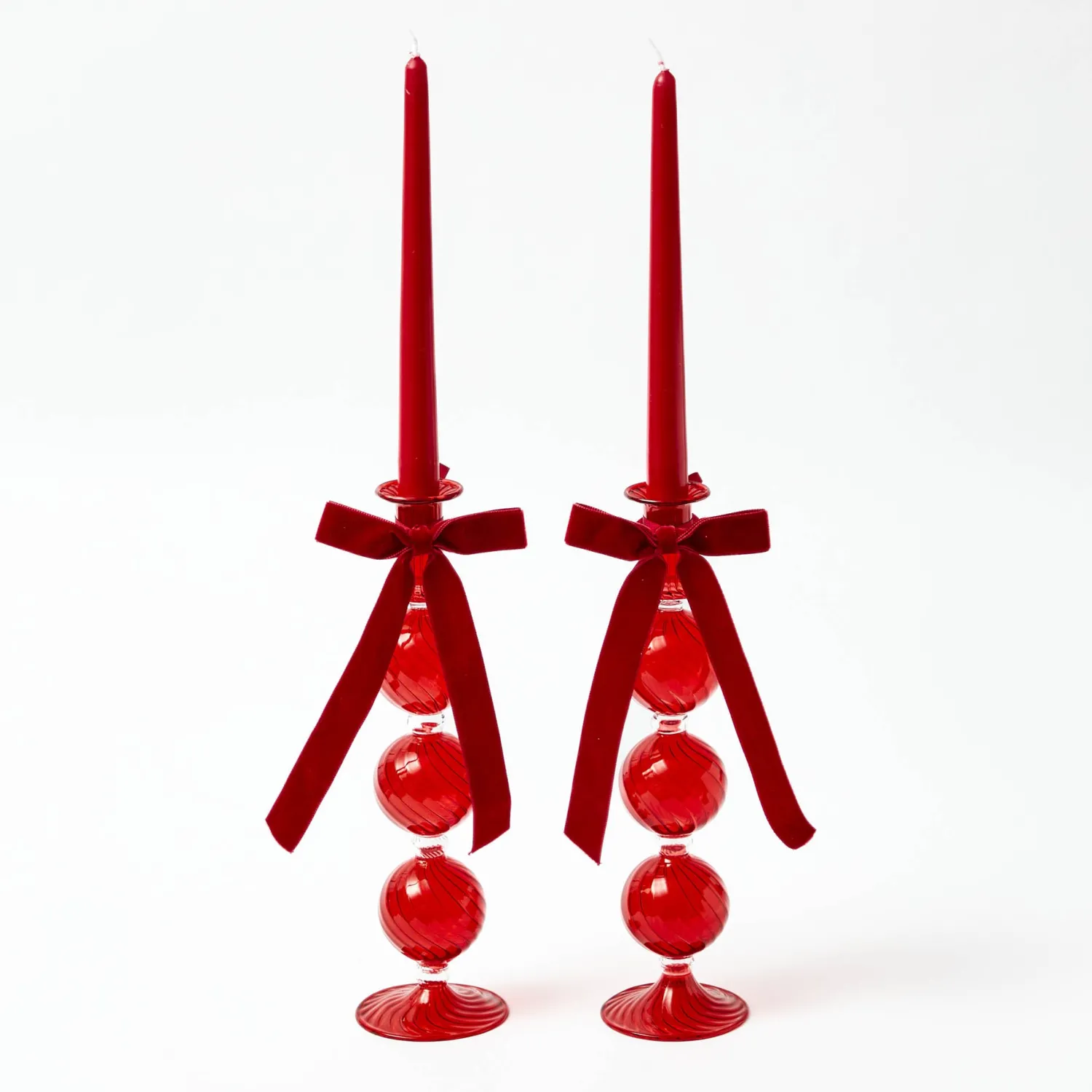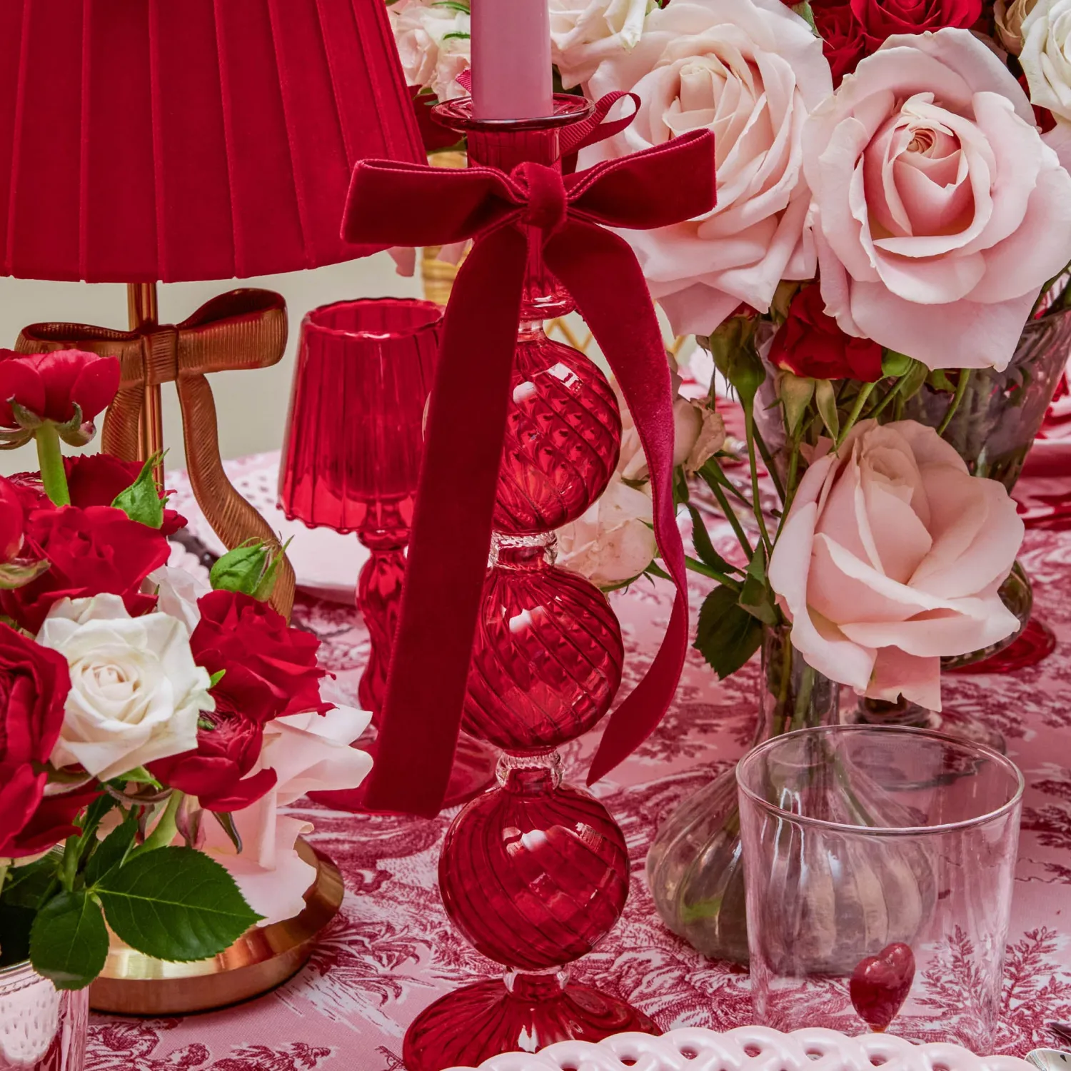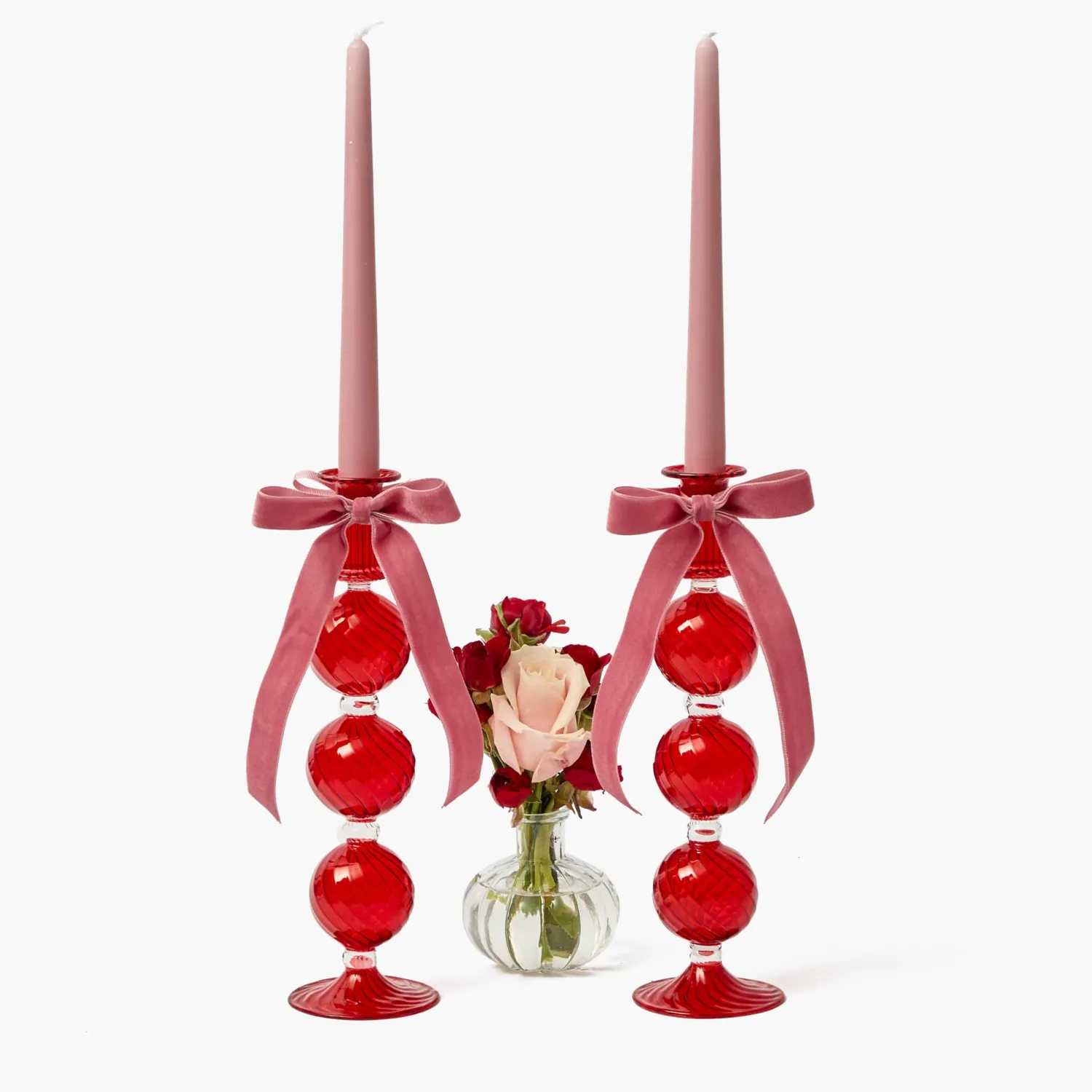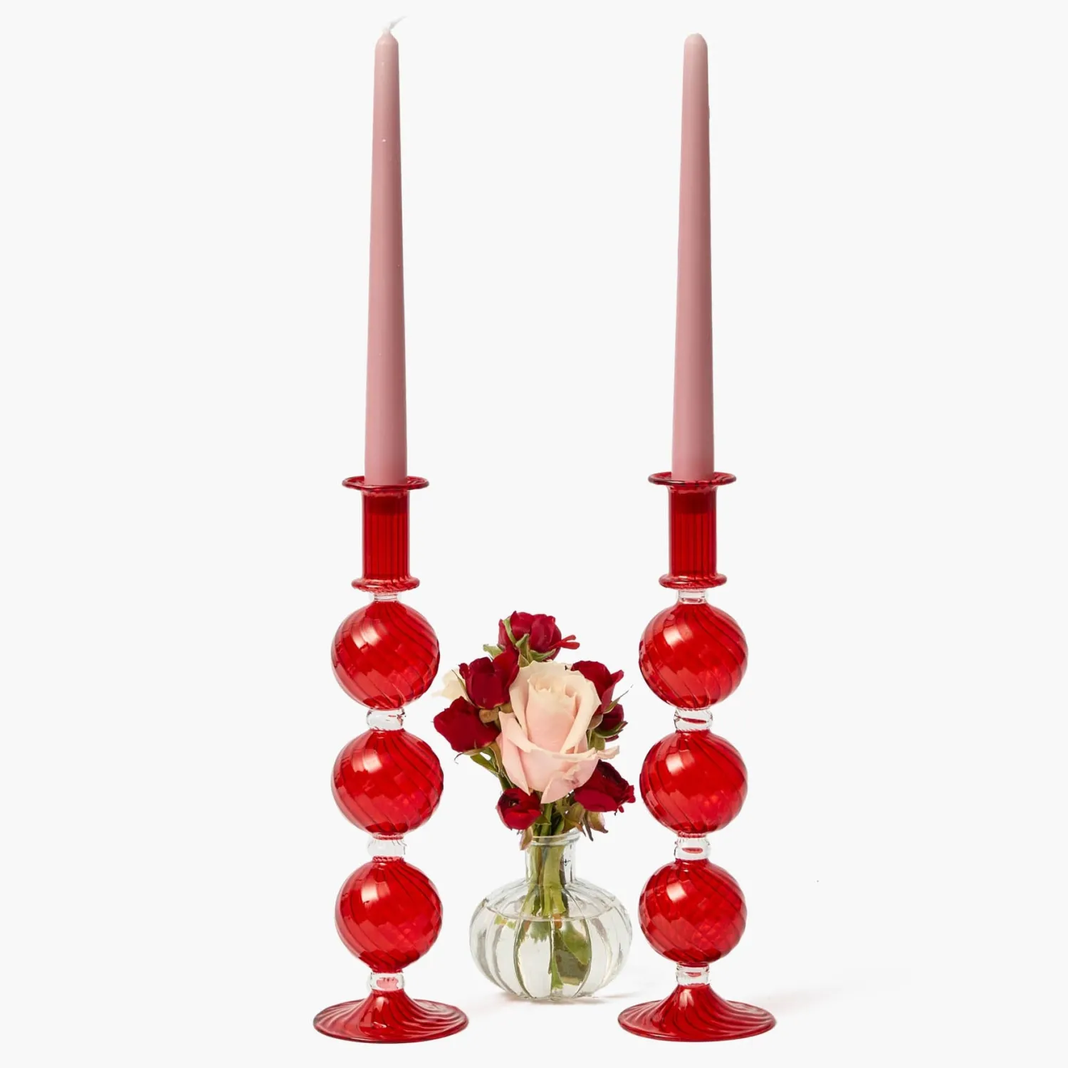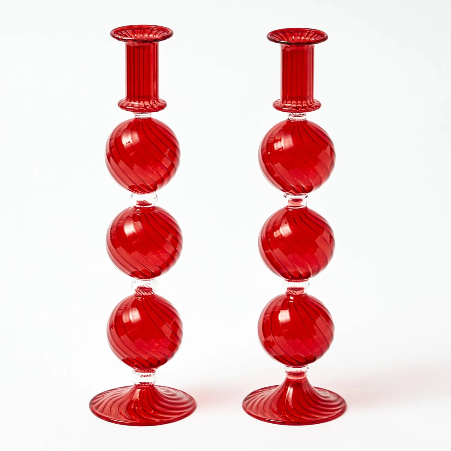 Enhance your seasonal centrepiece with our opulent pair of Camille Red Candle Holders. These vibrant red glass pieces feature a unique spherical design with a textured finish, perfect for creating a romantic ambience.