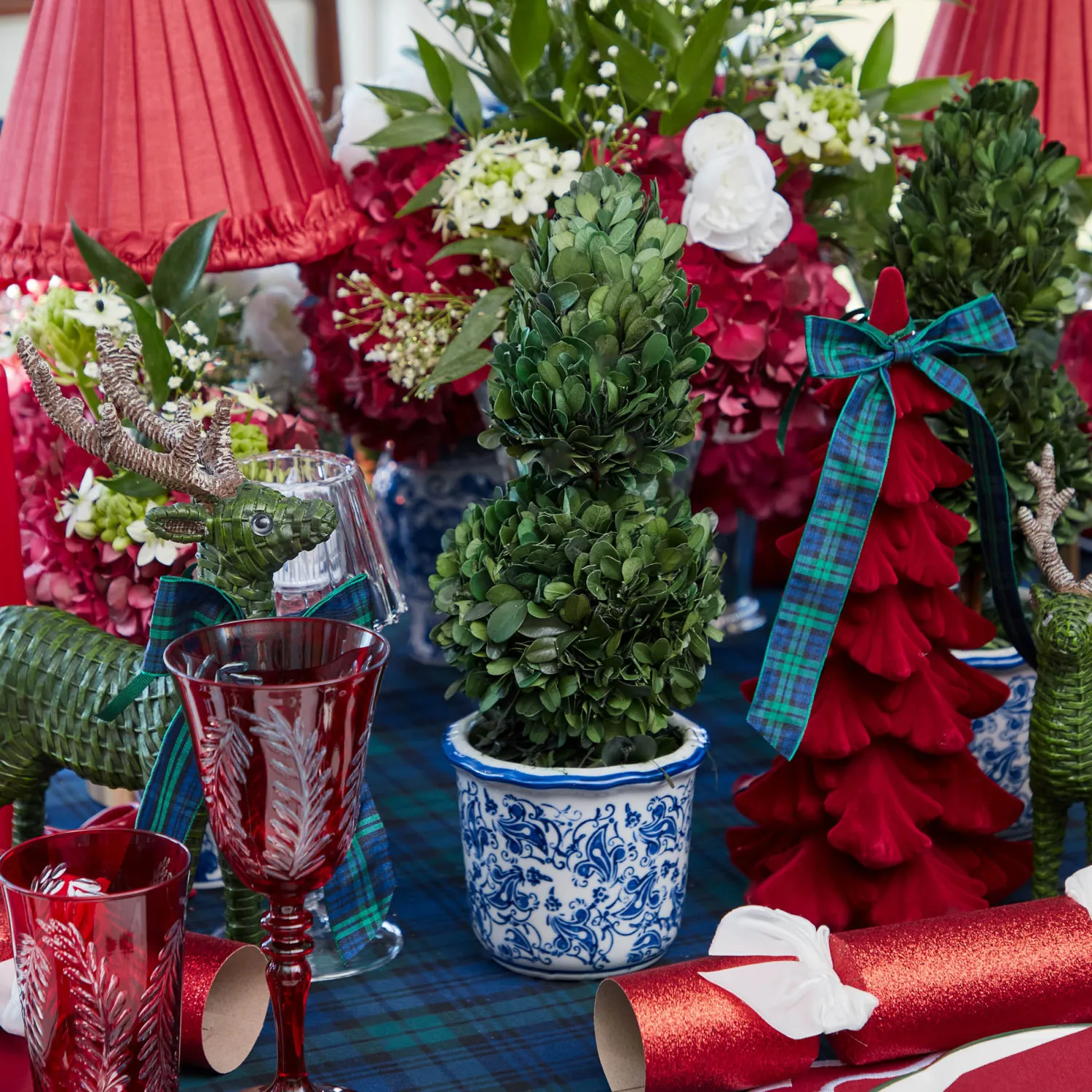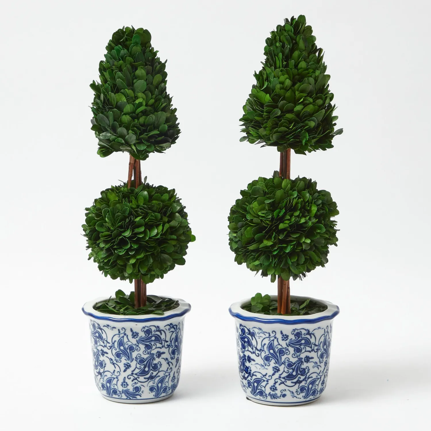 This pair of lush green Chinoiserie Potted Boxwood Trees come in elegant blue & white pots. Working well across the home they will pair prettily with blues, whites and greens.
