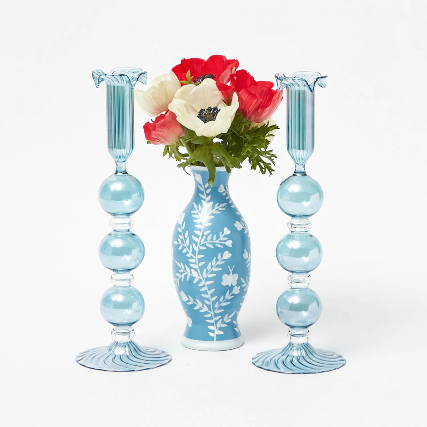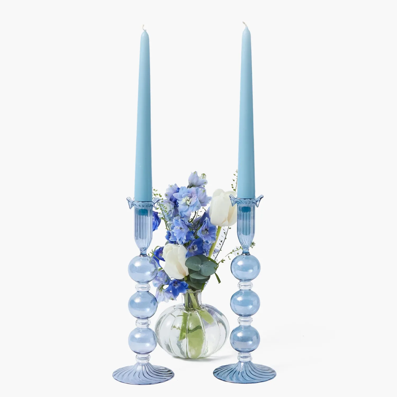 Our pair of Blue Eden Candle Holders come in a refreshing blue hue and are perfect for elevating your home. Carefully cr…