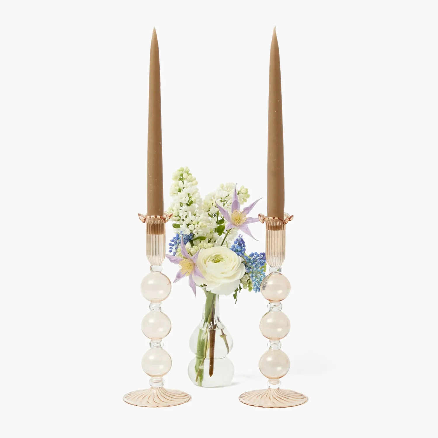 Our elegant Eden Chestnut Candle Holders are lovely with their hand-blown spheres and delicately swirled glass. Designed in a natural chestnut shade, these candle holders will add rich seasonal tones to your home.