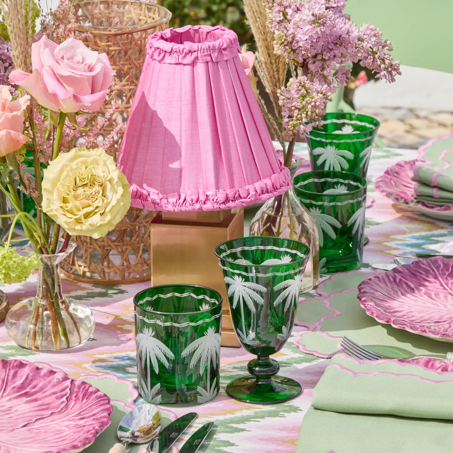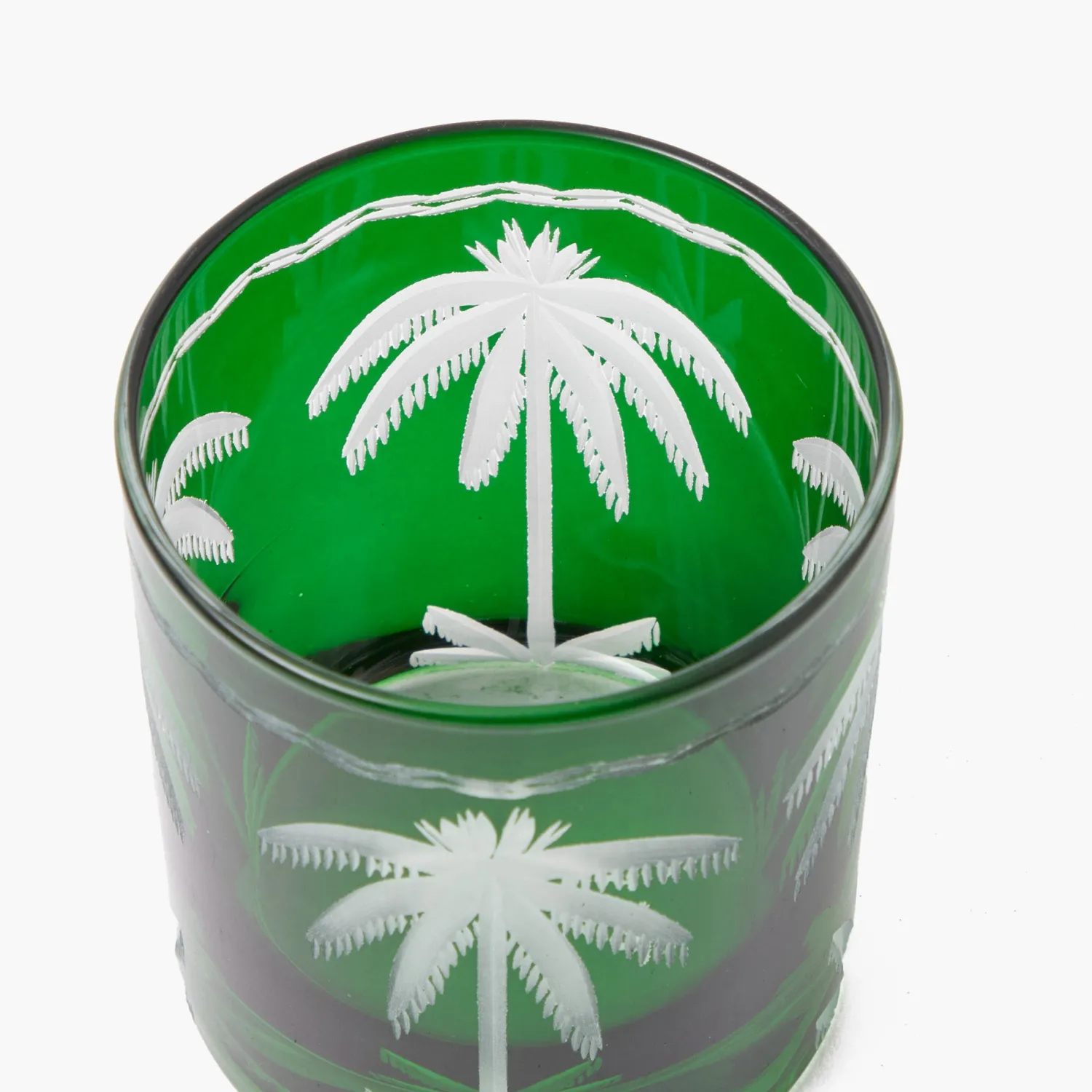 Add effortless elegance to your table settings this season with our Emerald Palm Tree Water Glasses. These four stunning pieces are inspired by the lush botanicals of Spain and are the perfect way to serve still of sparkling beverages.