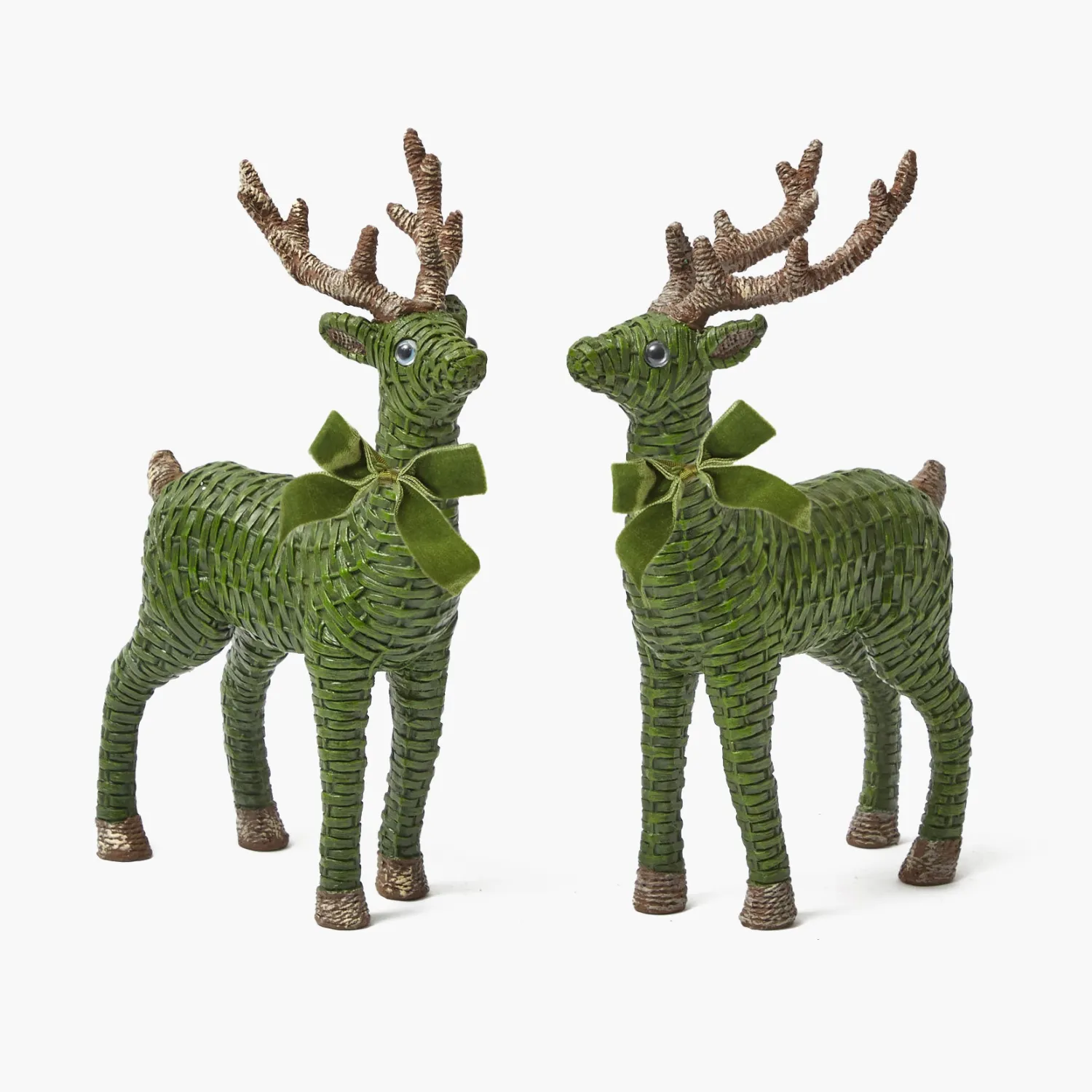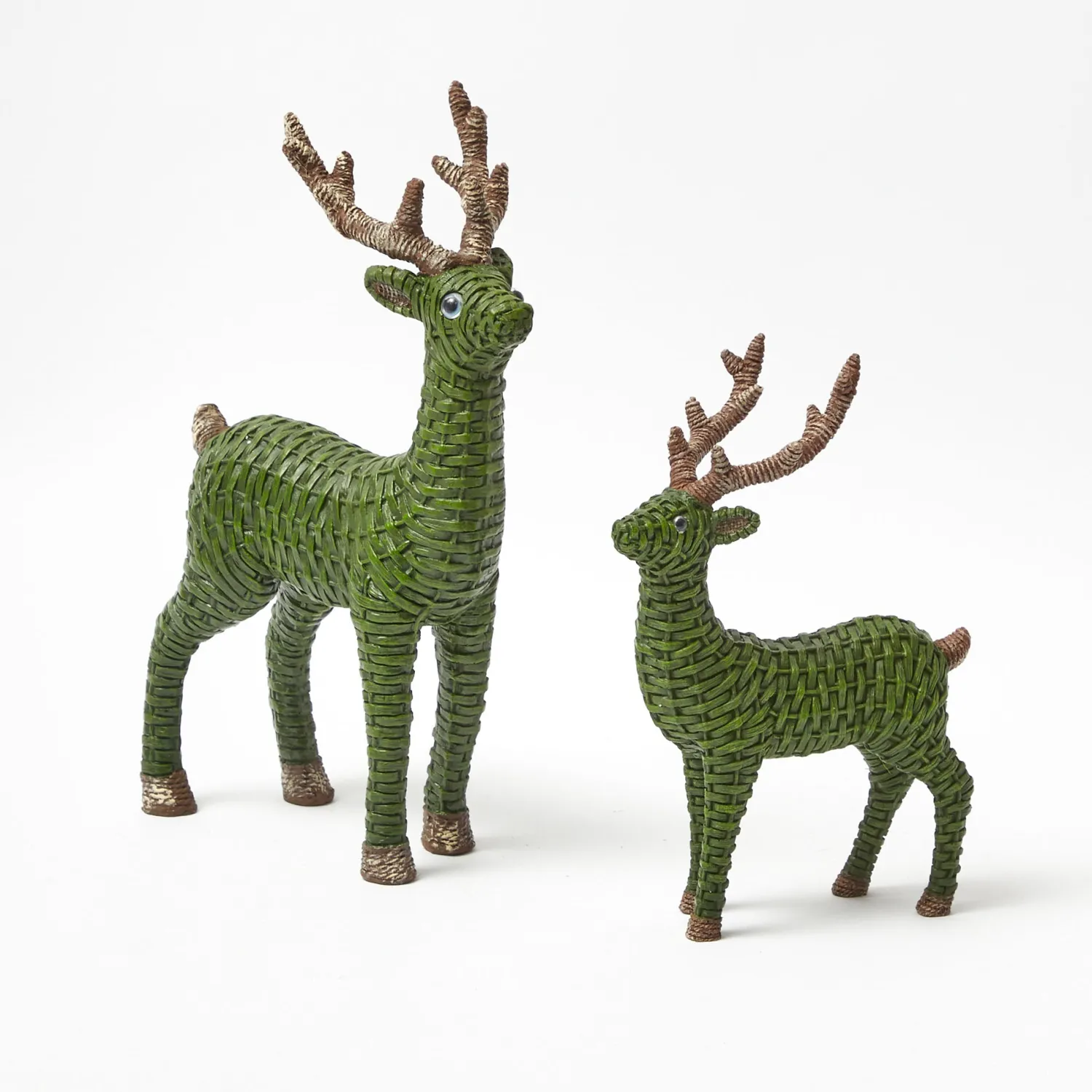 Our charming Forest Green Rattan Reindeer are the perfect holiday accessory. Whether on your mantelpiece or Christmas table, these woven reindeer will instantly bring a classic charm and a playful feel to your decor.