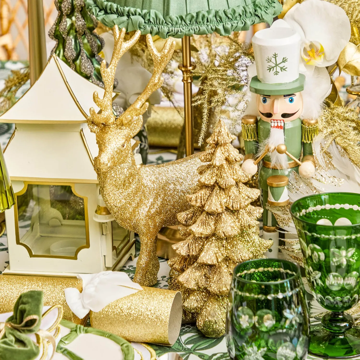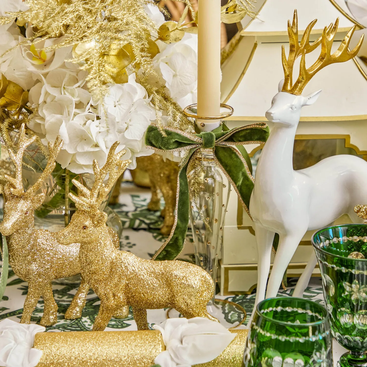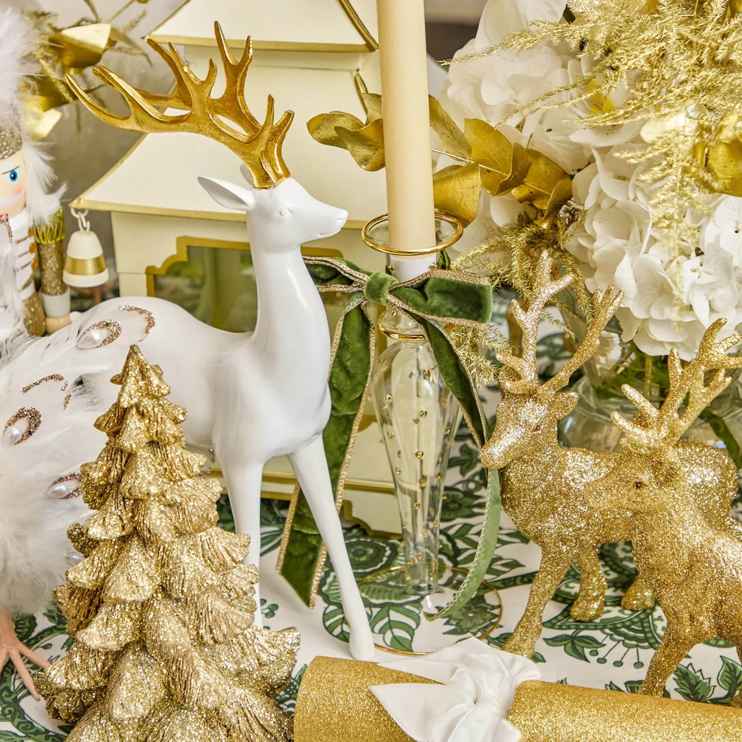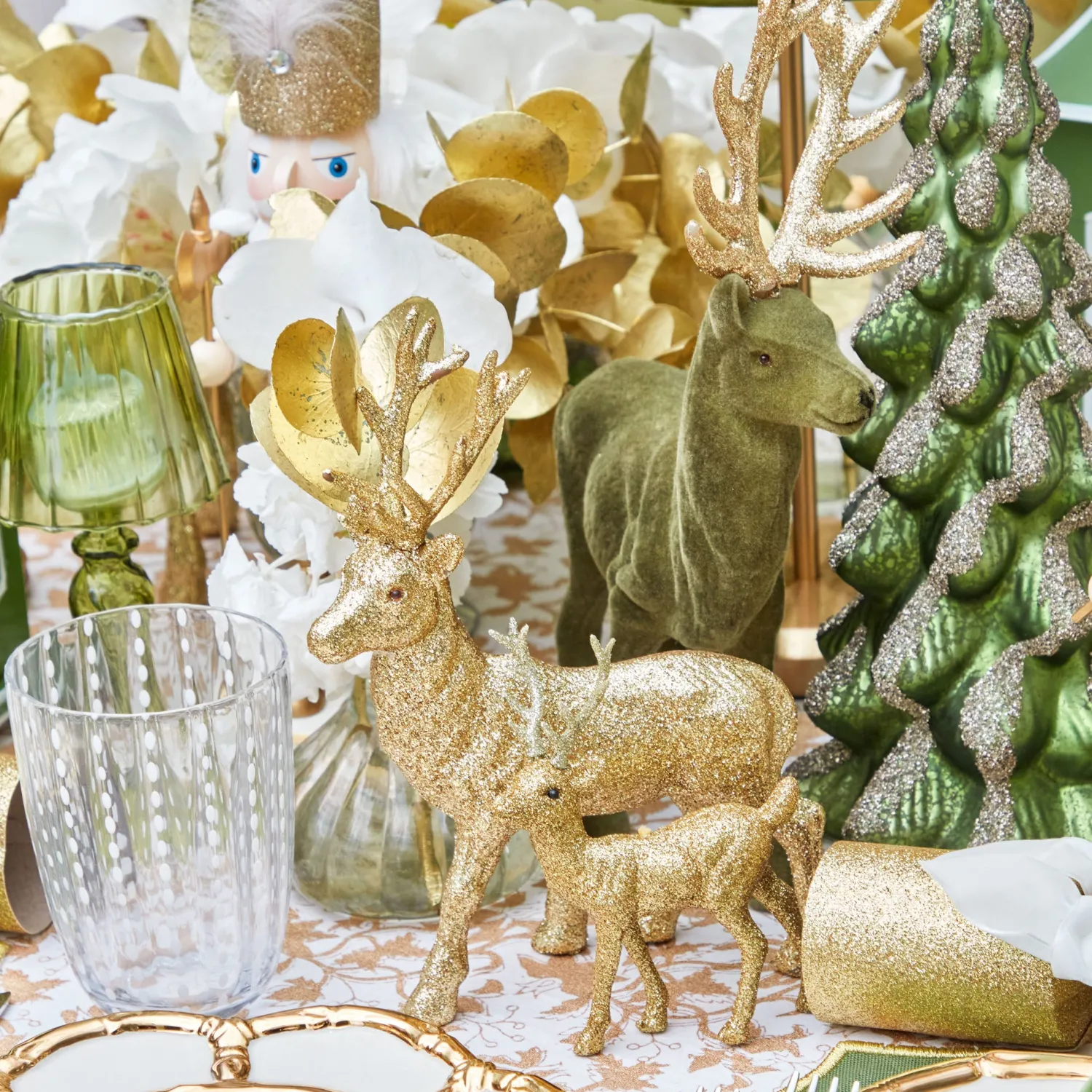 Let this charming family of 3 gold glittered reindeer adorn your table this Christmas.