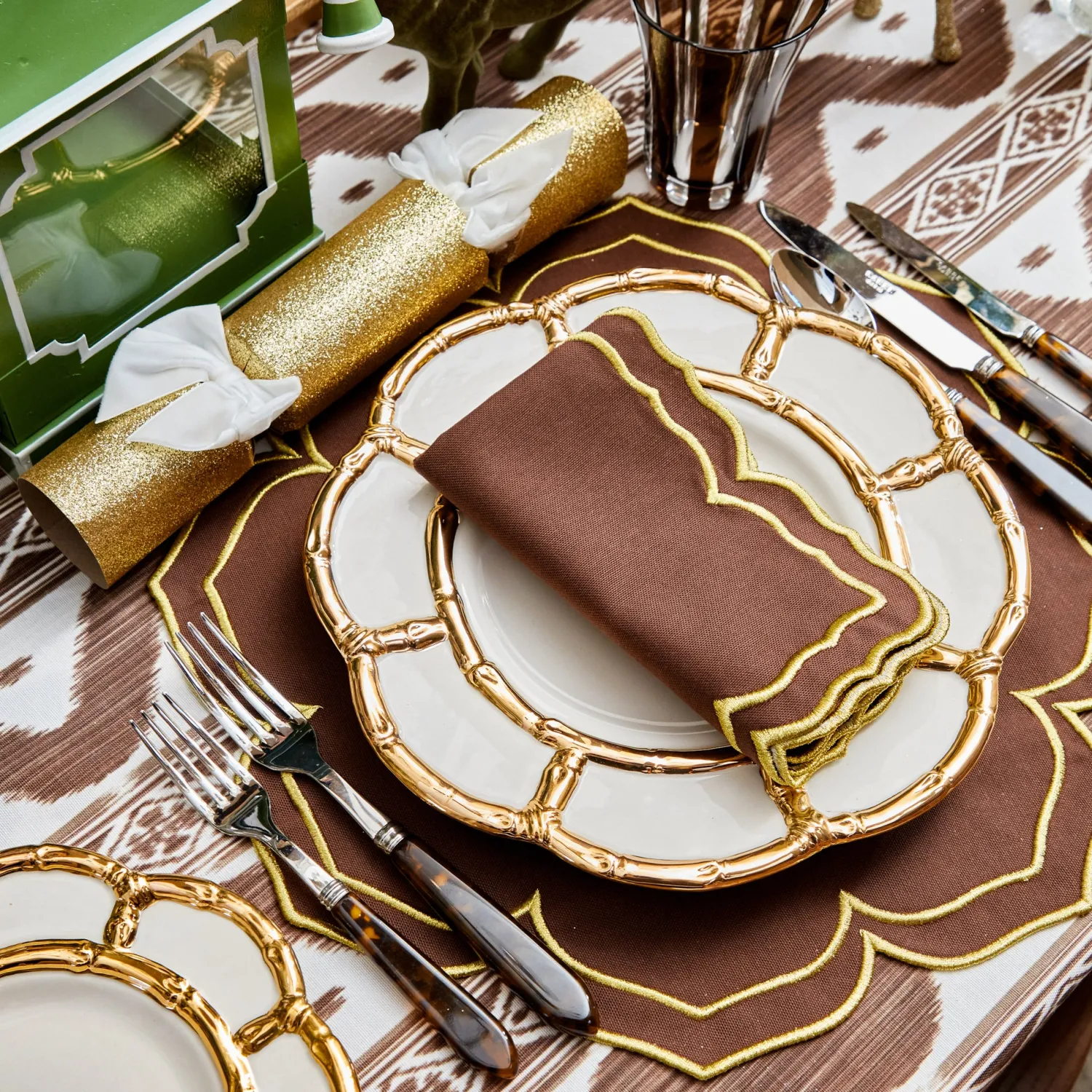 Our Gold Petal Bamboo Dinner Plate Set is elegantly hand-painted in Italy.