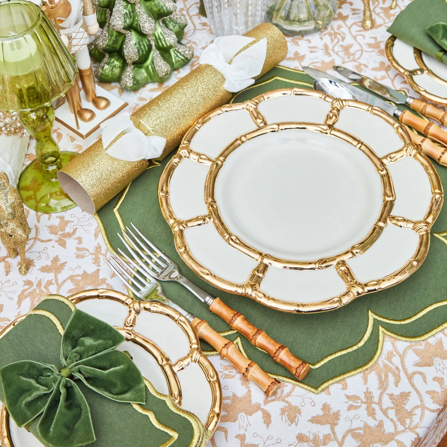 Our Gold Petal Bamboo Dinner Plate Set is elegantly hand-painted in Italy.With a gold floral bamboo border, they bring c…