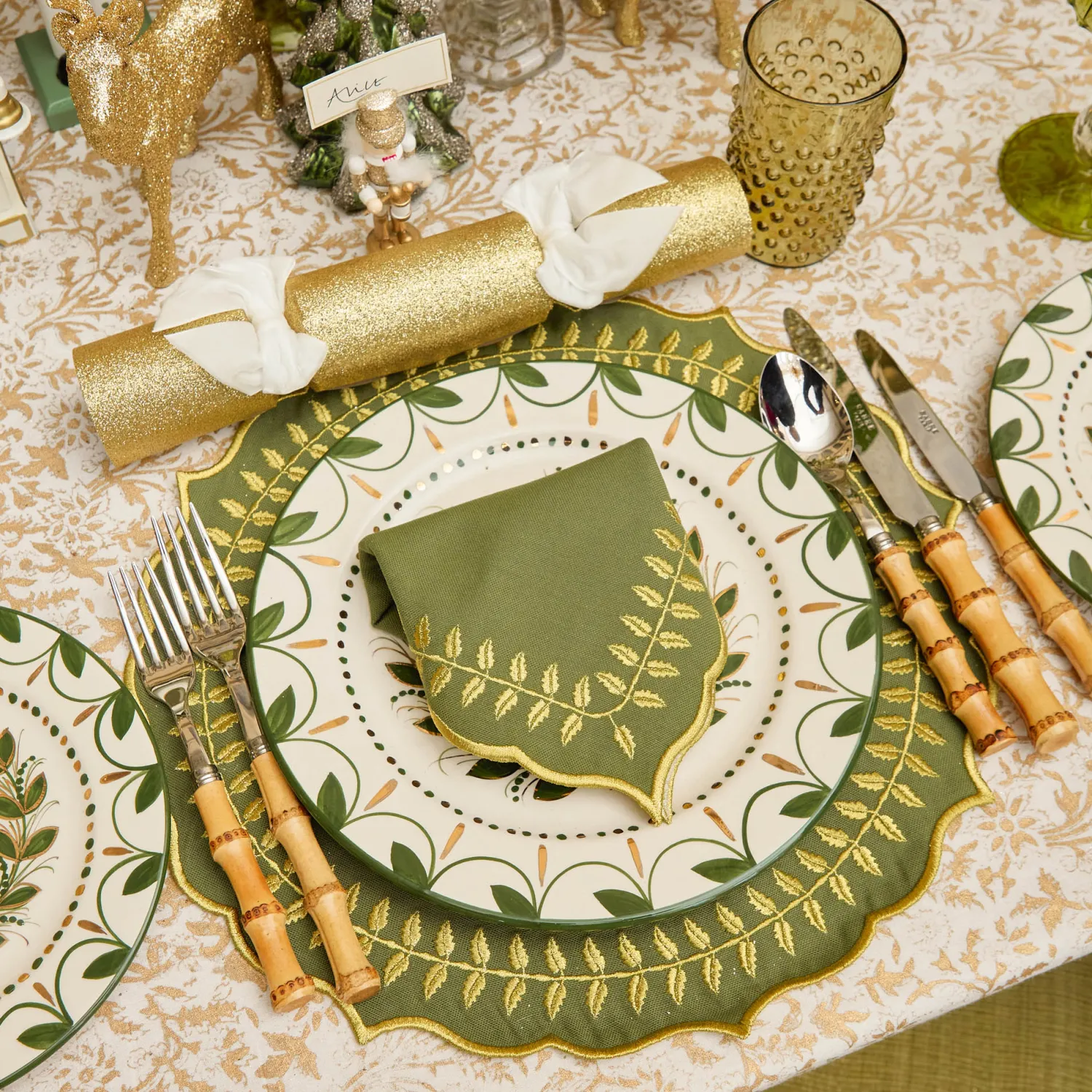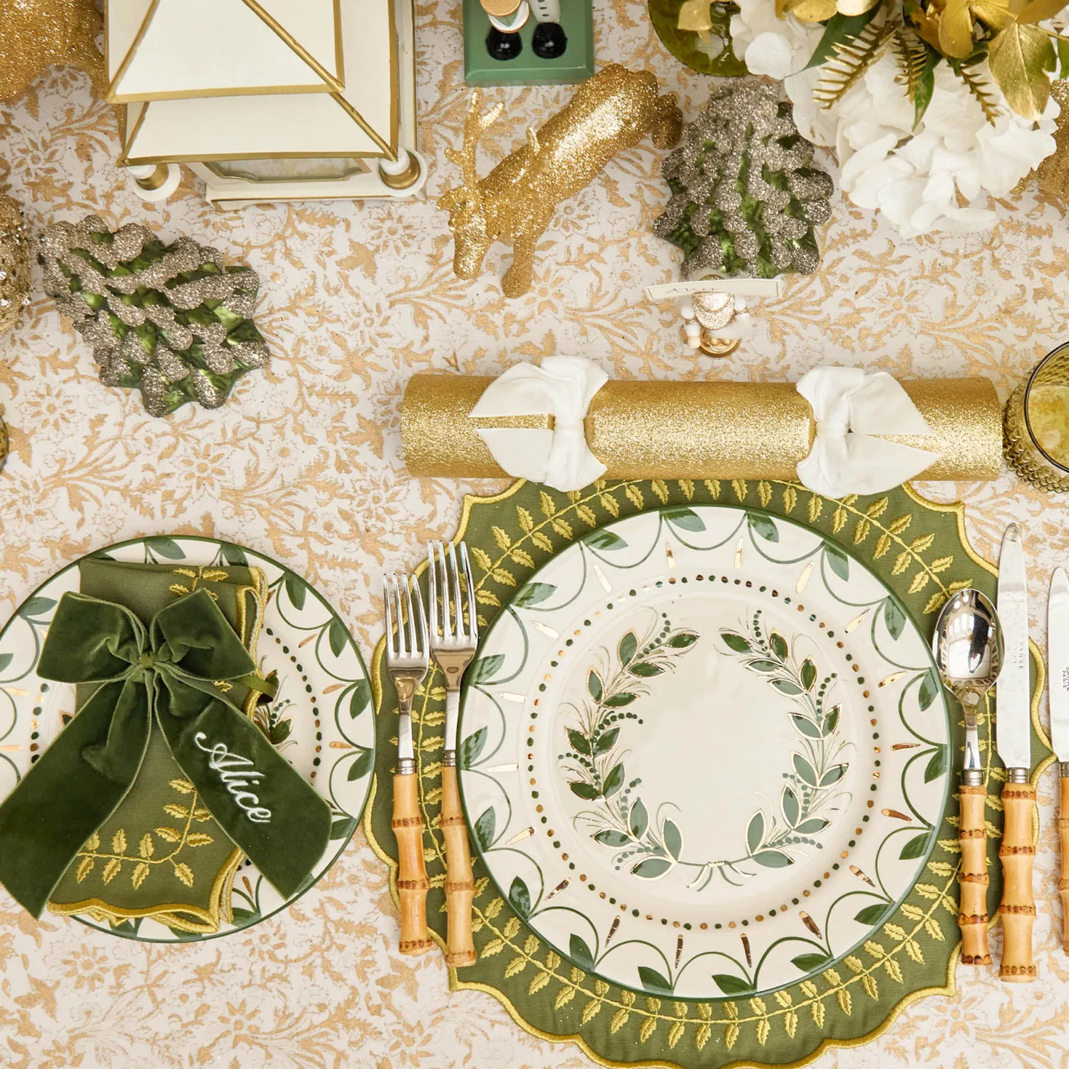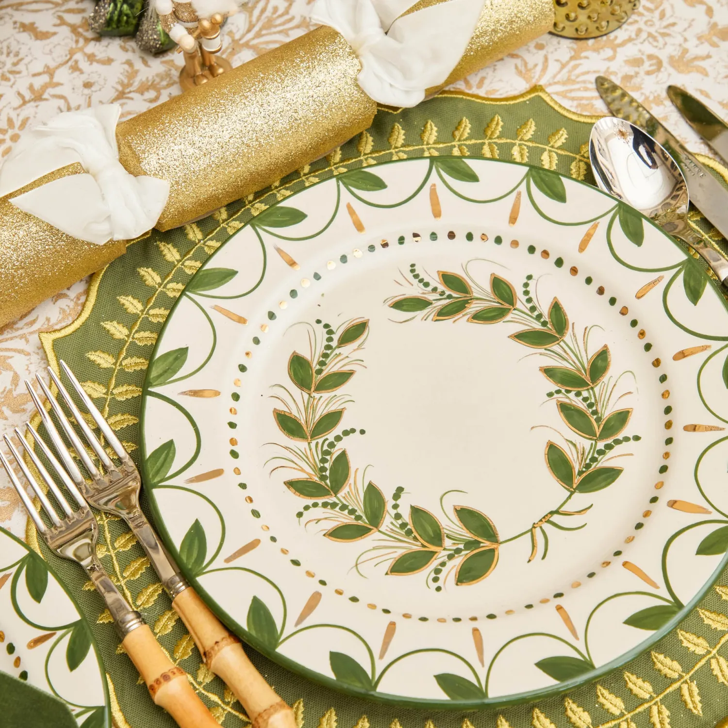 Our Green & Gold Laurel Placemats will effortlessly elevate your festive tables. Featuring an elegant green base with a stunning golden laurel trim, these four placemats will instantly add timeless style to your celebratory meals.