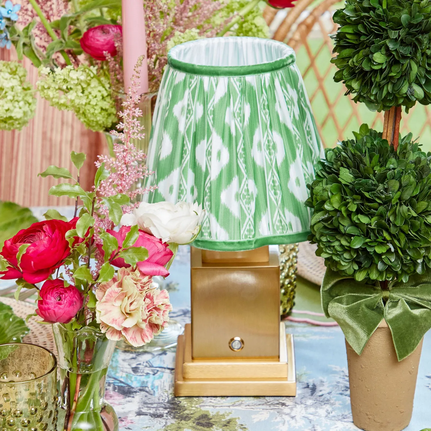 Our crisp Apple Green Ikat Scalloped Lampshade adds a fresh touch to your home.