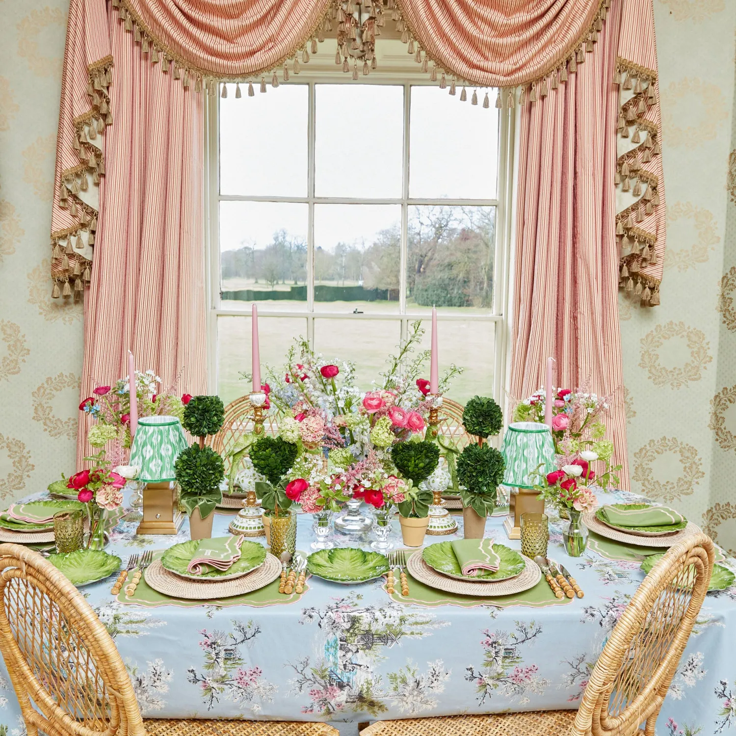 Elegant and chic, it features Serena Fresson’s Ikat Fabric in a fabulous apple green with a matching darker green velvet trim.