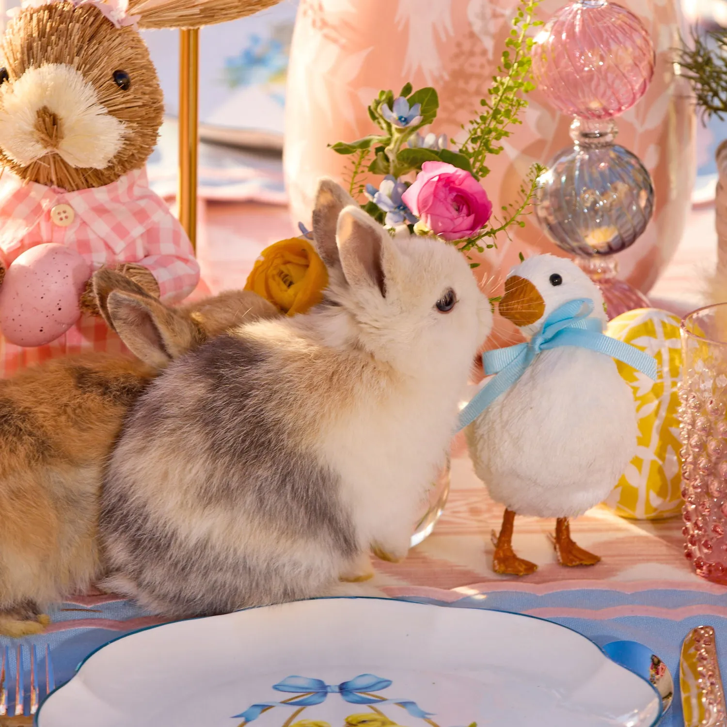 Our pretty pair of Jemima Ducks are a playful addition to your springtime tablescape. These fluffy feathered pieces have been designed to look over their shoulders adorably and would look stunning together or styled separately. Both ducks are completed with a baby blue bow tie, perfect for coorindating with matching table linen.