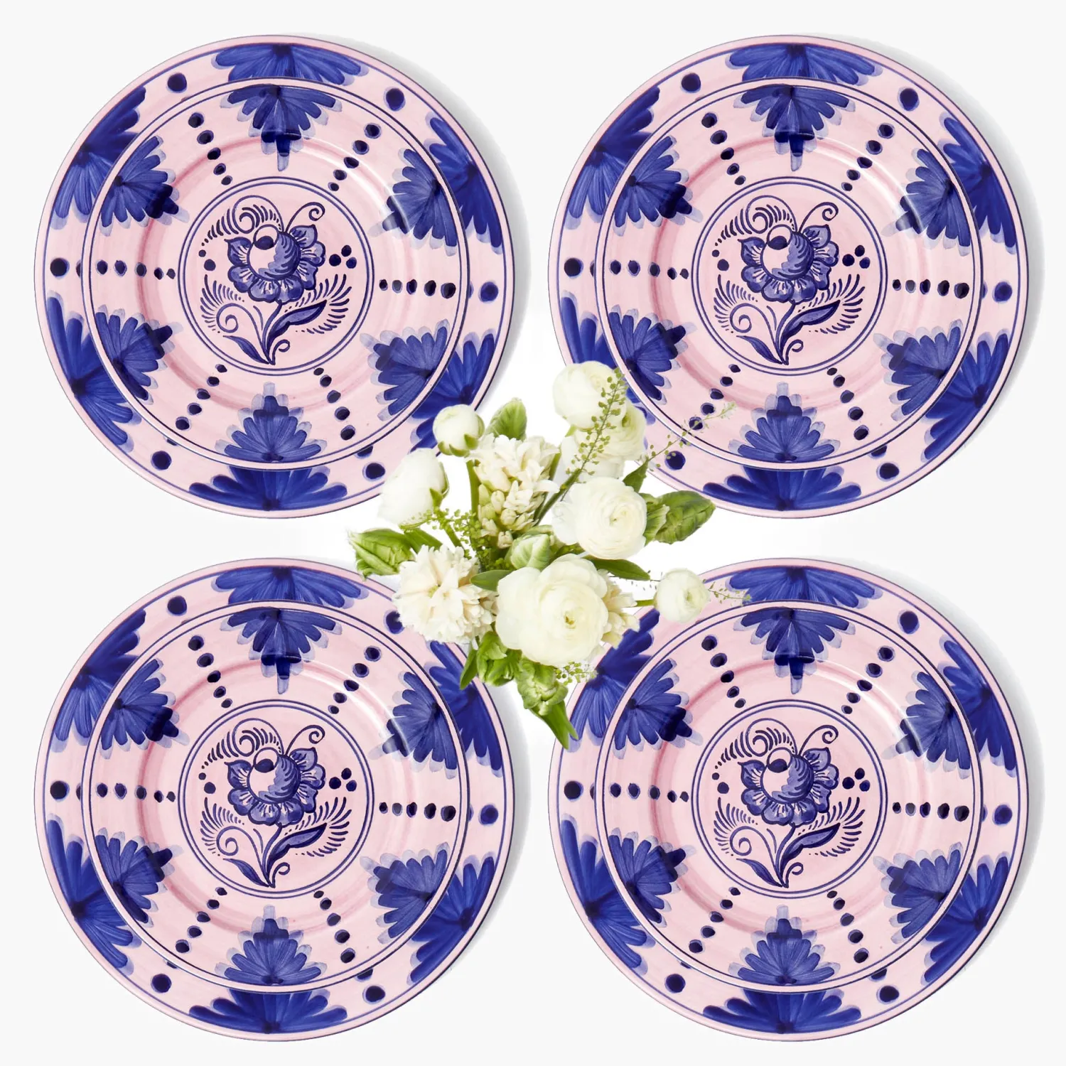 Our delightful Kamari Pink & Blue Dinner & Starter Plates are a staple of our delightful collaboration with Marie-Chantel, Princess of Greece. This Mediterranean-inspired set features a rosy blush hue and is embellished with a floral centre.