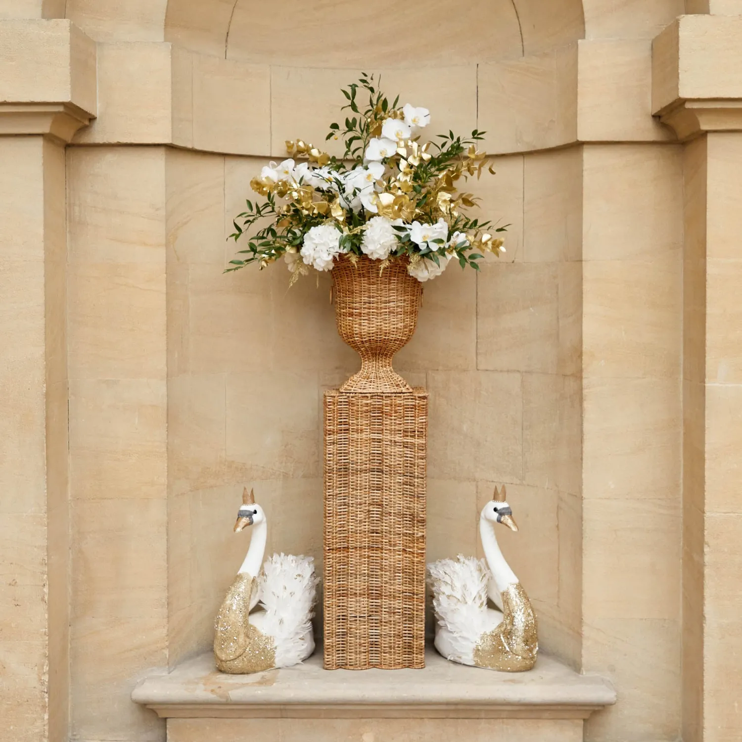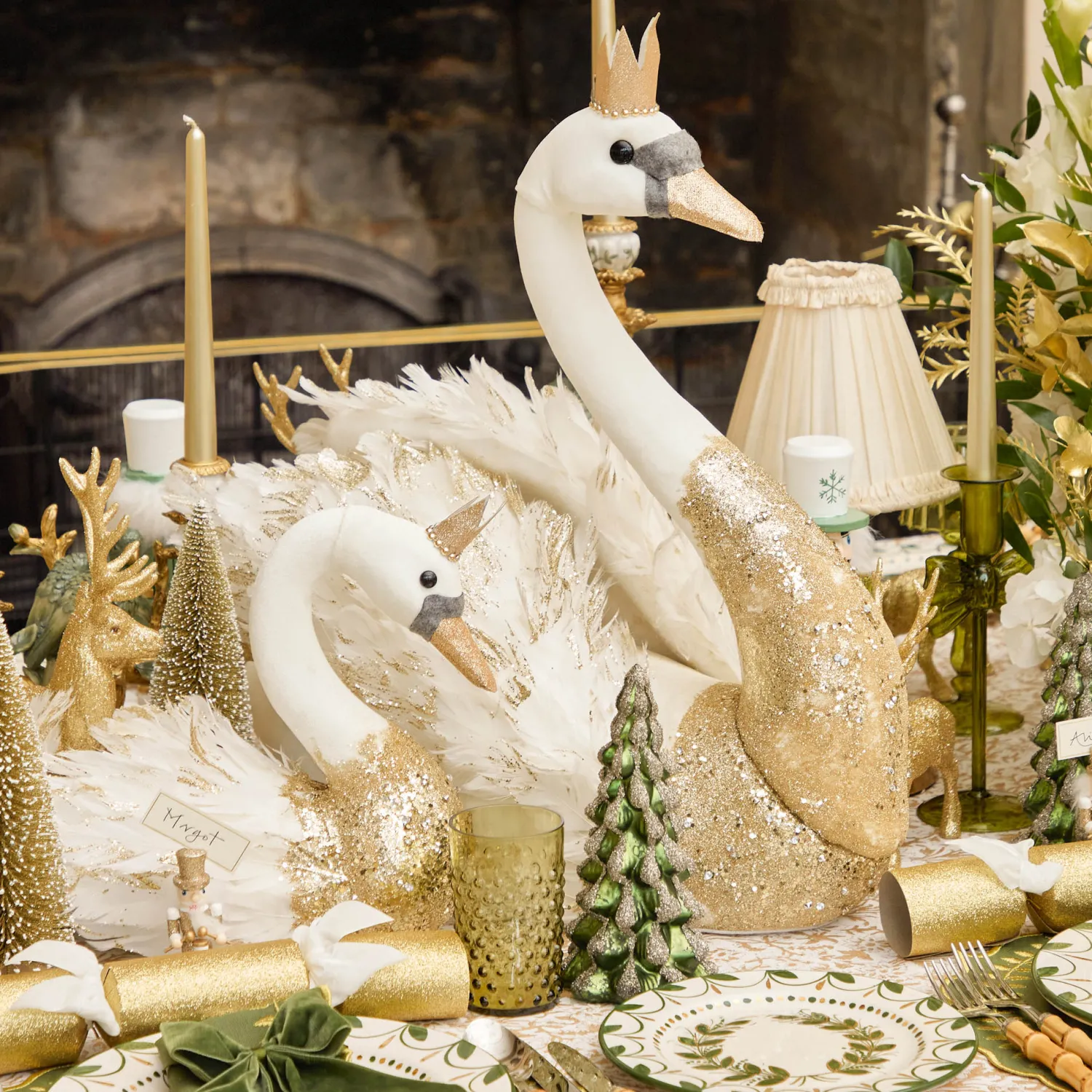 Our Large Giselle Glitter Swan will bring a sense of luxury and elegance to any festive setting. Adorned with shimmering glitter, velvet and feathered wings, this graceful piece is ideal for creating an enchanting winter wonderland in your home.