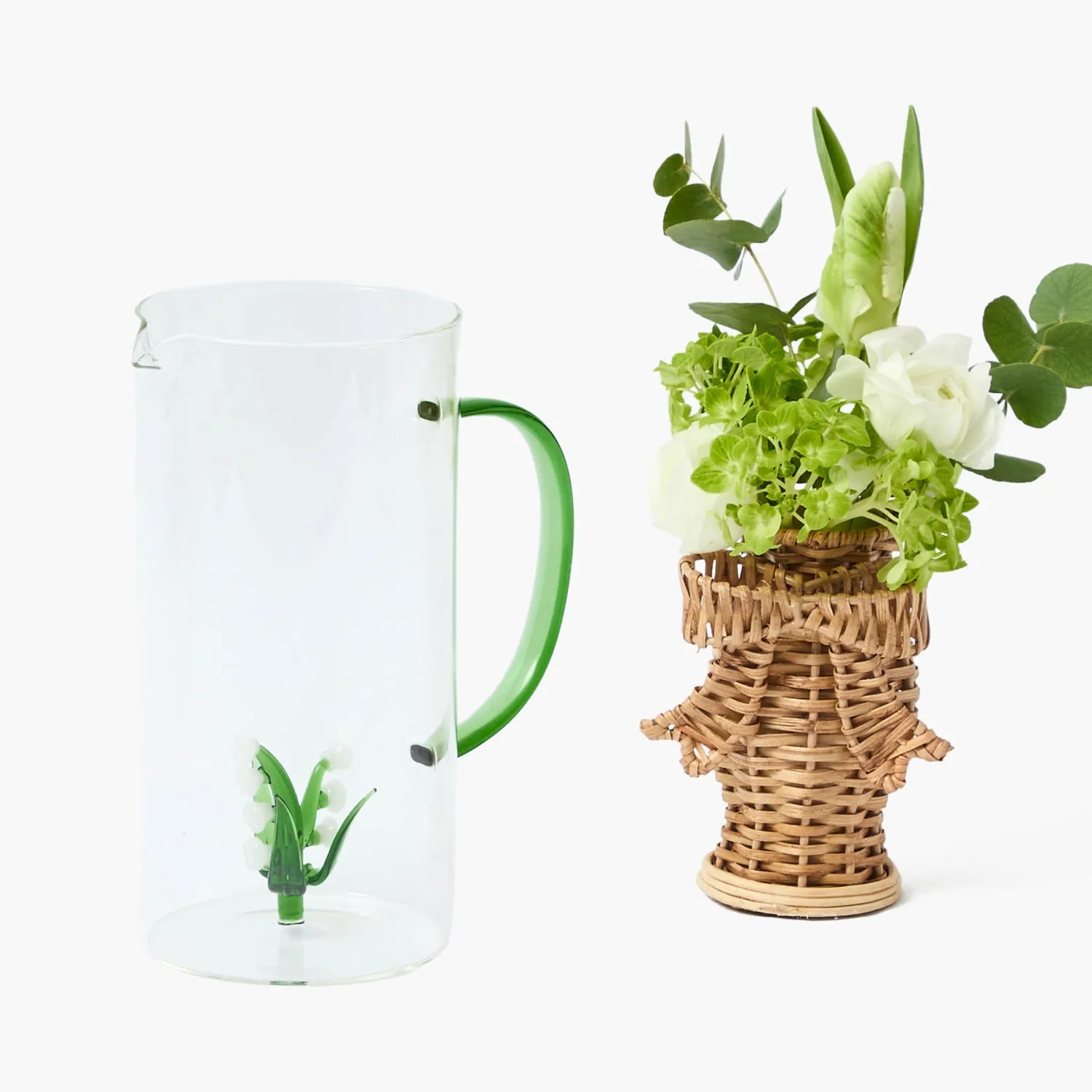 Our Lily of the Valley Glass Jug is a lovely way to keep your guests refreshed this season. It’s sleek design is elevated with a vibrant green glass handle and carefully crafted Lilly of the Valley motif on the body.