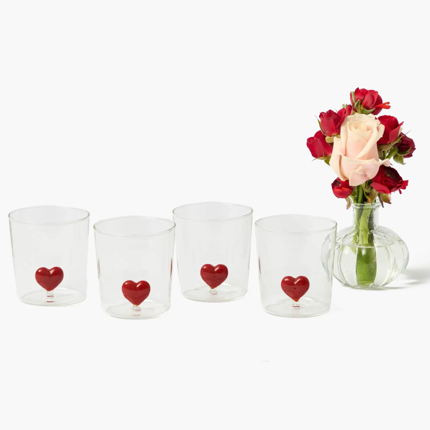 Our sweet Love Heart Glasses are the perfect addition for Valentine’s Day. Featuring a cherry red heart on clear glass, they pair perfectly with romantic colourways such as reds and pinks.