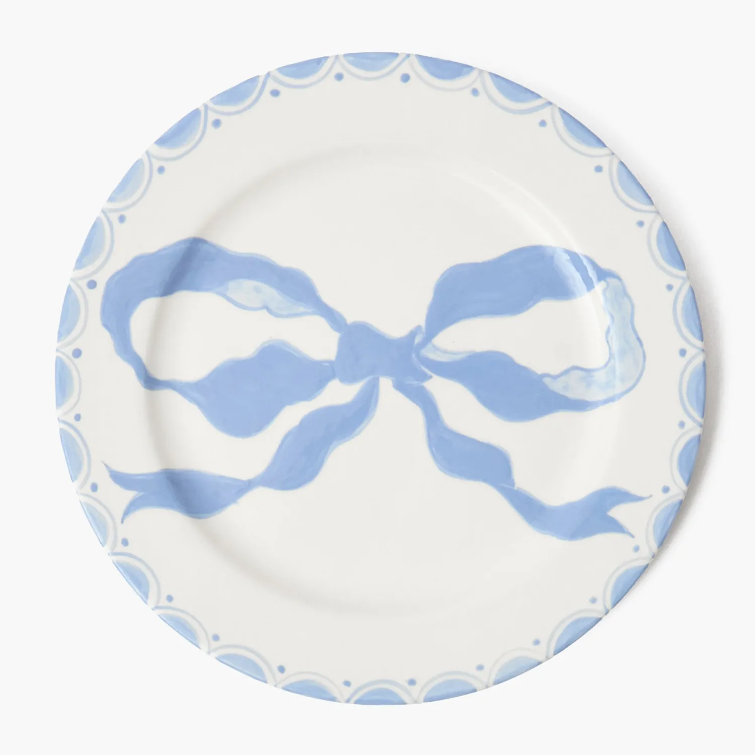 Elevate your appetisers with our Marilyn Blue Bow Starter Plate. This ceramic piece features a serene baby blue hue and a versatile white base. The centre is embellished with a wonderfully whimsical bow design that’s framed by an intricate trim.