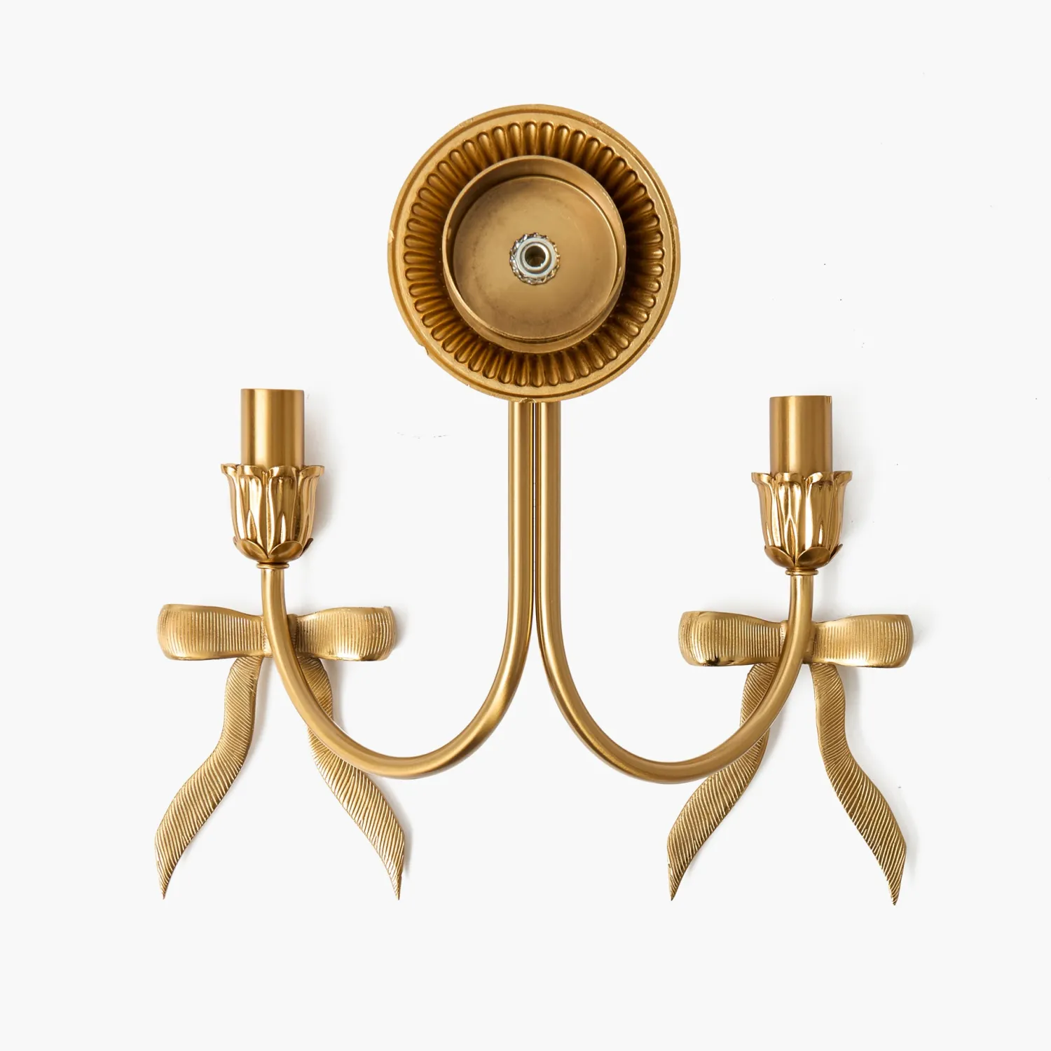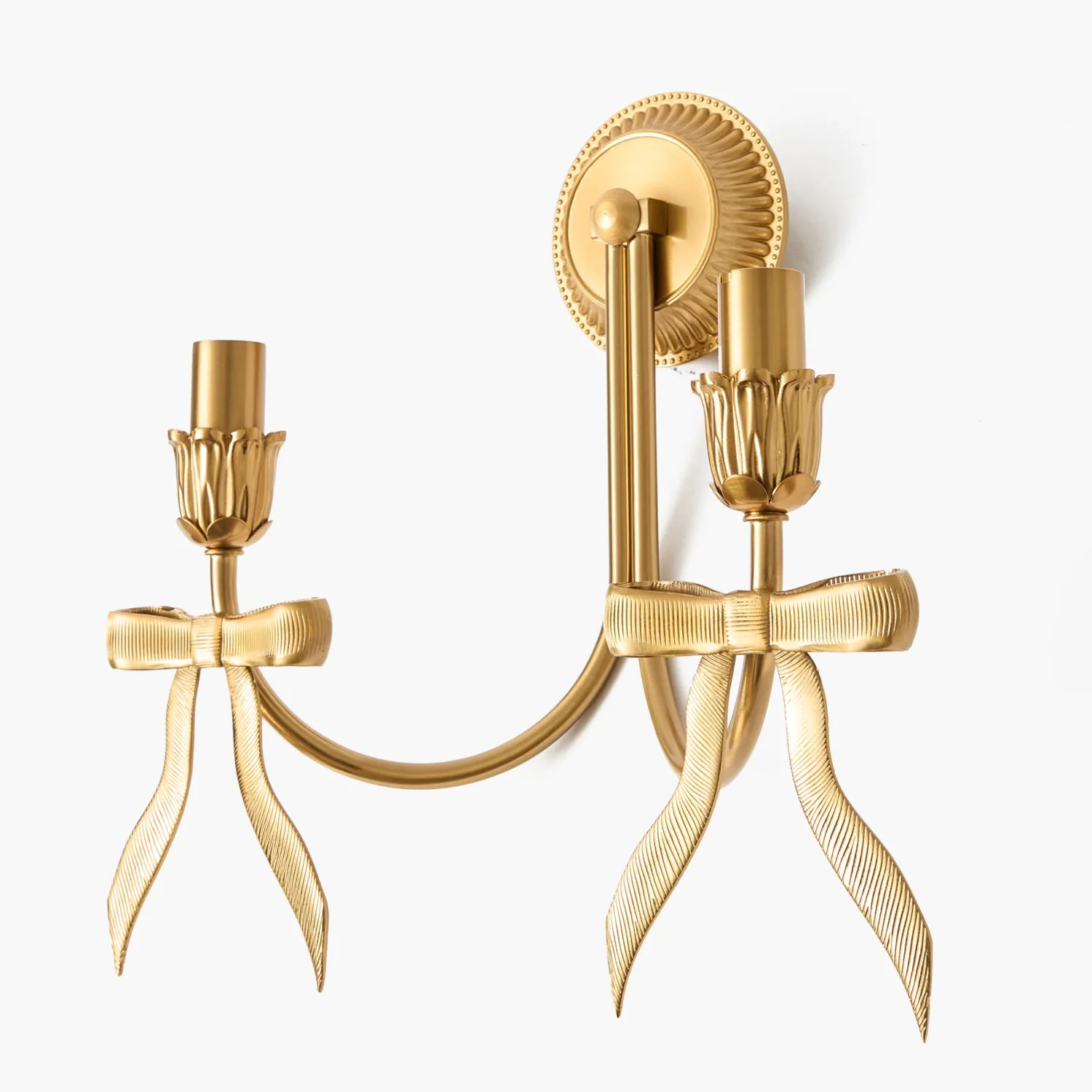 Our Marilyn Bow Rechargeable Double Wall Light is a wonderfully whimsical piece that will elevate your home. Designed in a golden hue and embellished with playful bows, this light is perfect for adding elegance to your spaces. Completed with two rechargeable bulbs, this light eliminates any hassle with hardwiring.