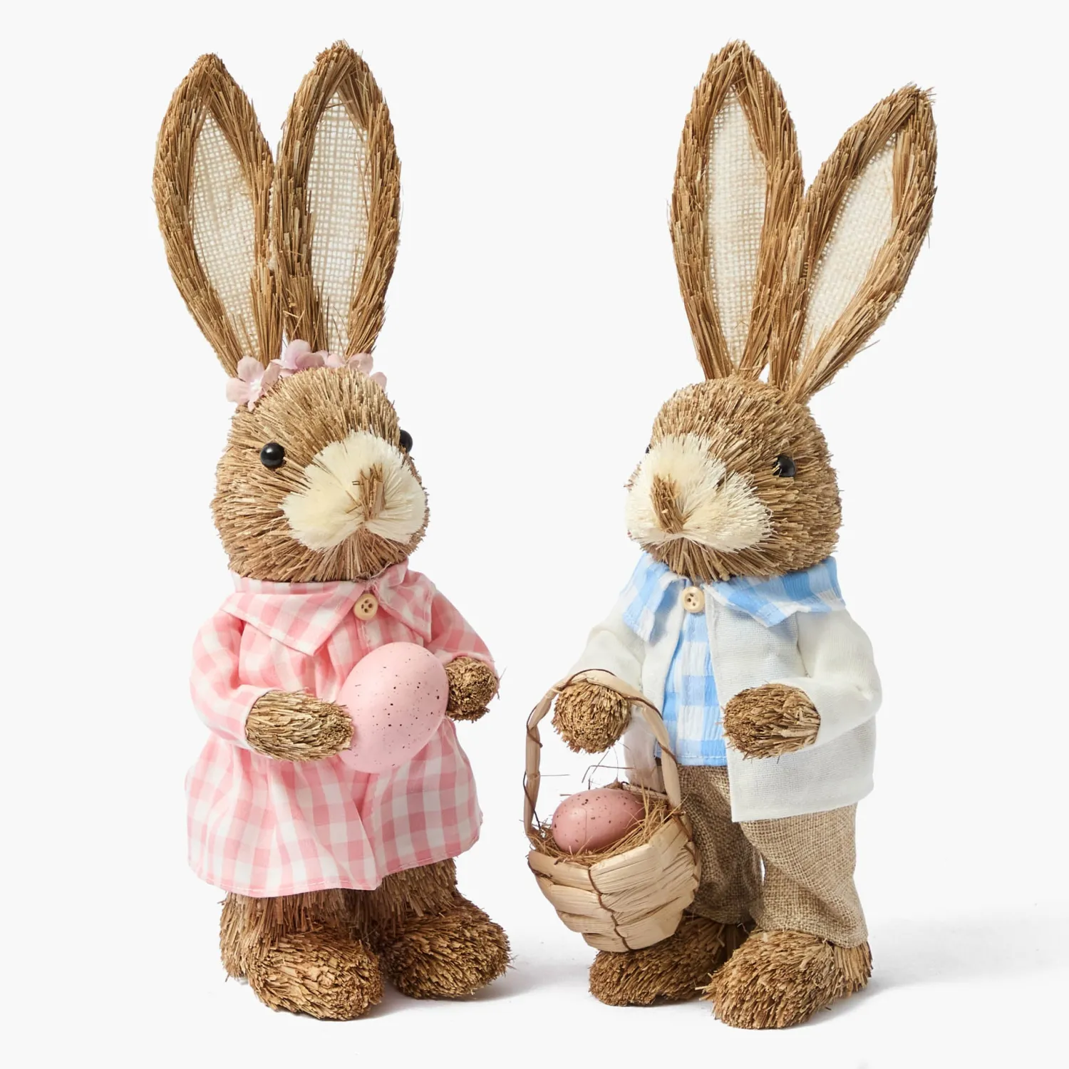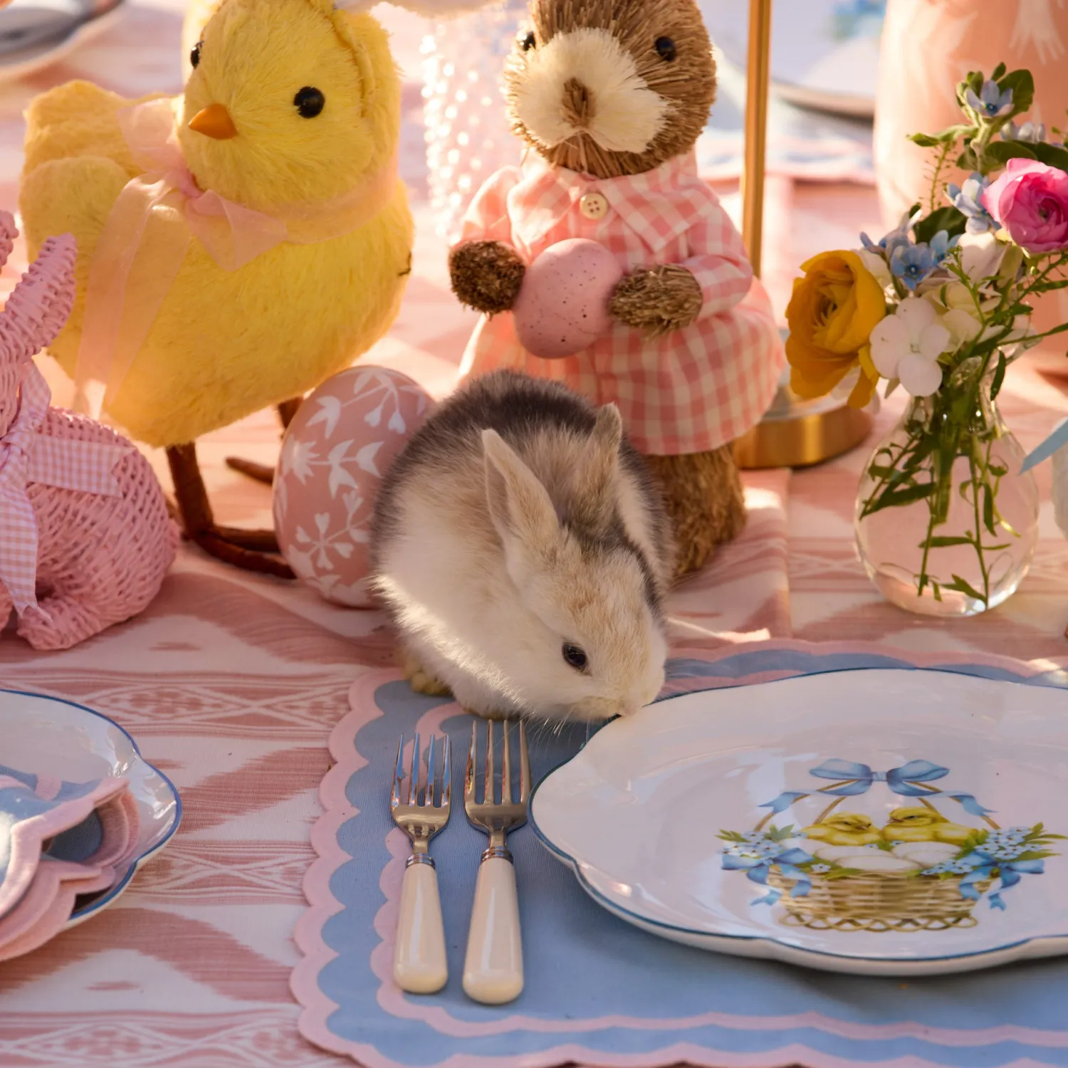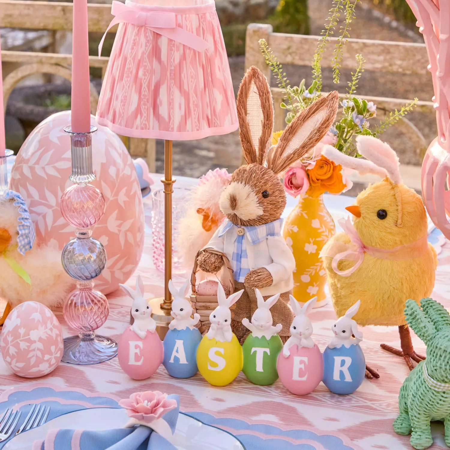 No Easter tablescape is complete without Mr & Mrs Easter Bunny. This adorable duo will instantly add playful character to your centrepiece. Mrs Easter Bunny comes styles in a sweet gingham dress, flower crown and is carrying a cooridnating egg, while her partner is in a blue gingham shirt with jacket and is holding a basket.