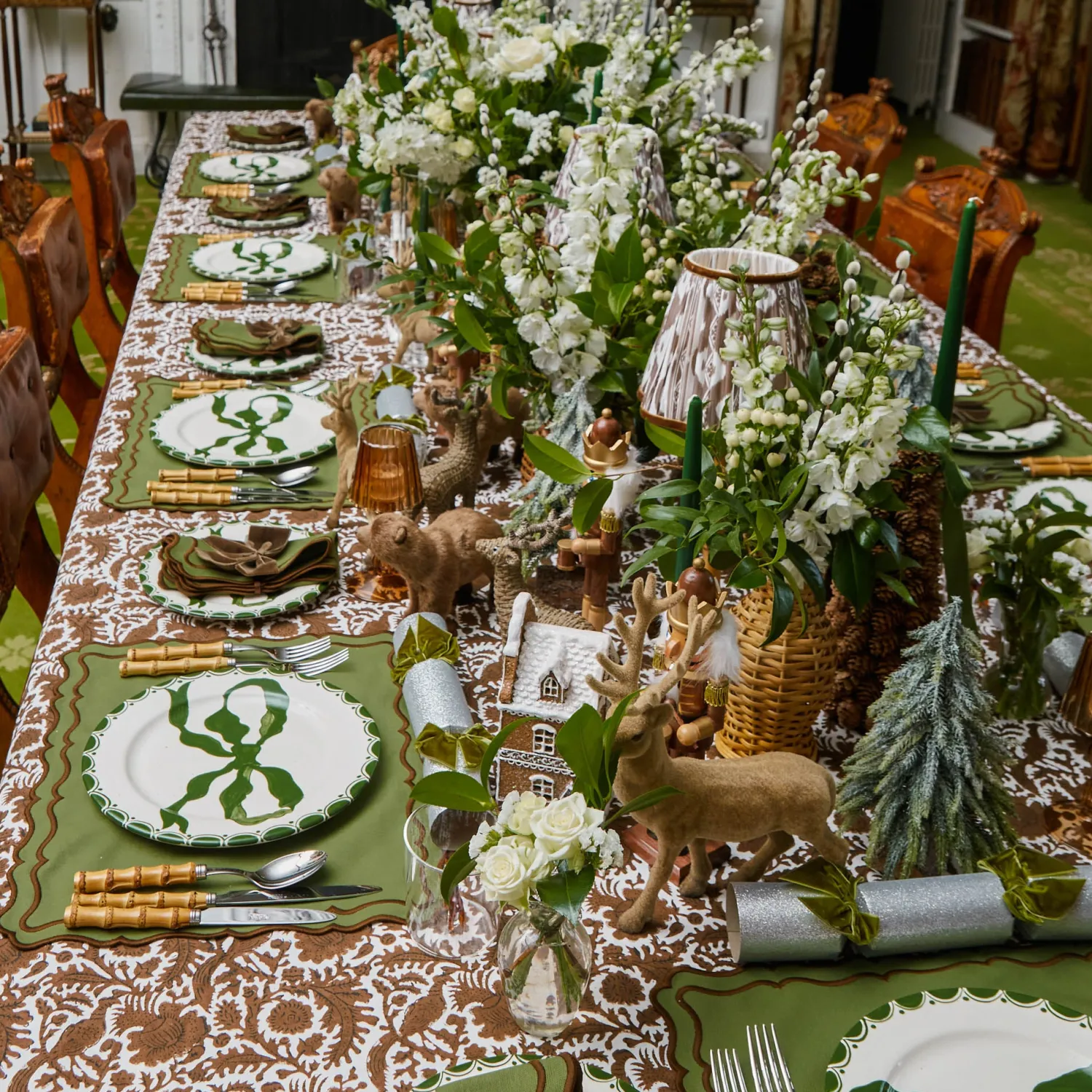Pair them with our Rattan Reindeer, Chocolate Ikat Tablecloth & Alathea Caramel Linens.