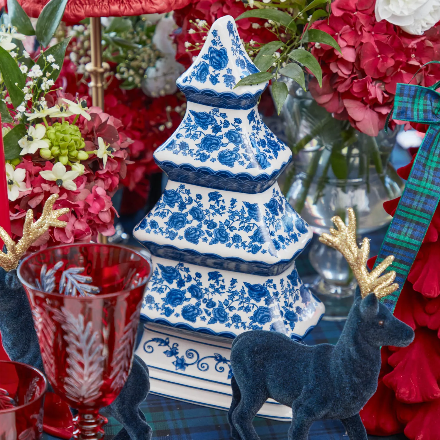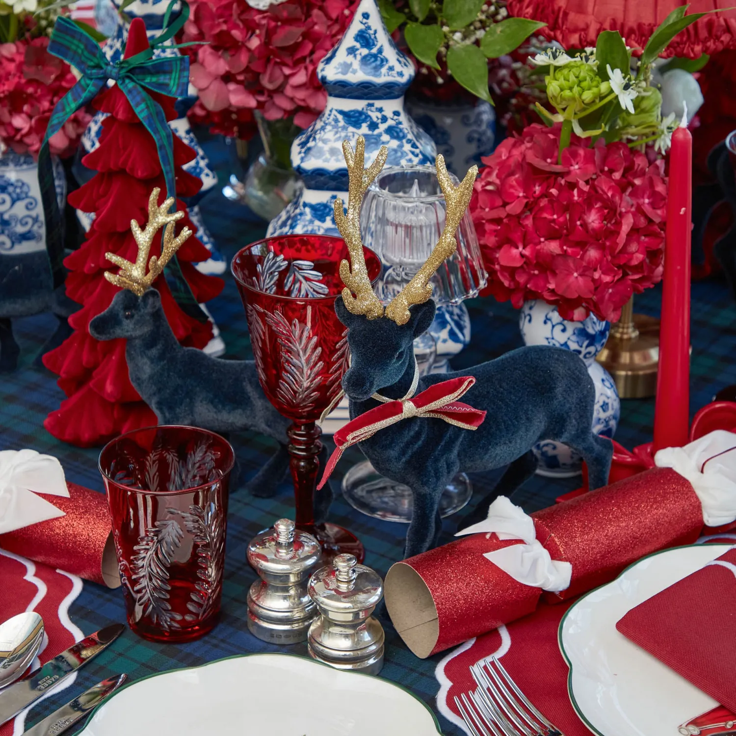 Our Navy Flocked Reindeer Family features three deep navy figures in a soft, velvety finish. Each piece is completed wit…