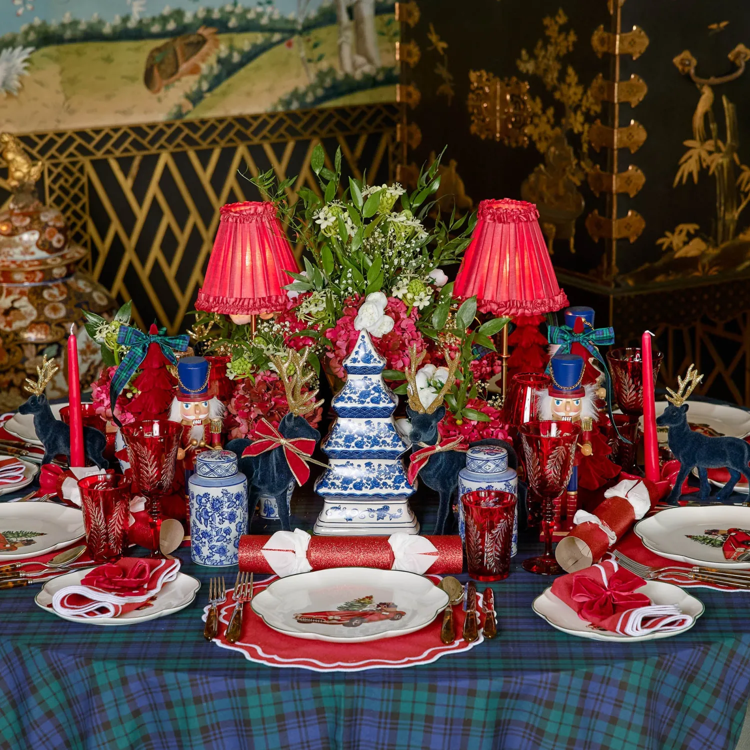 Add playful character to your holiday decor with our delightful Navy Flocked Reindeer. These two flocked, navy figures are accented with golden antlers and a sophisticated gold-trimmed bow.