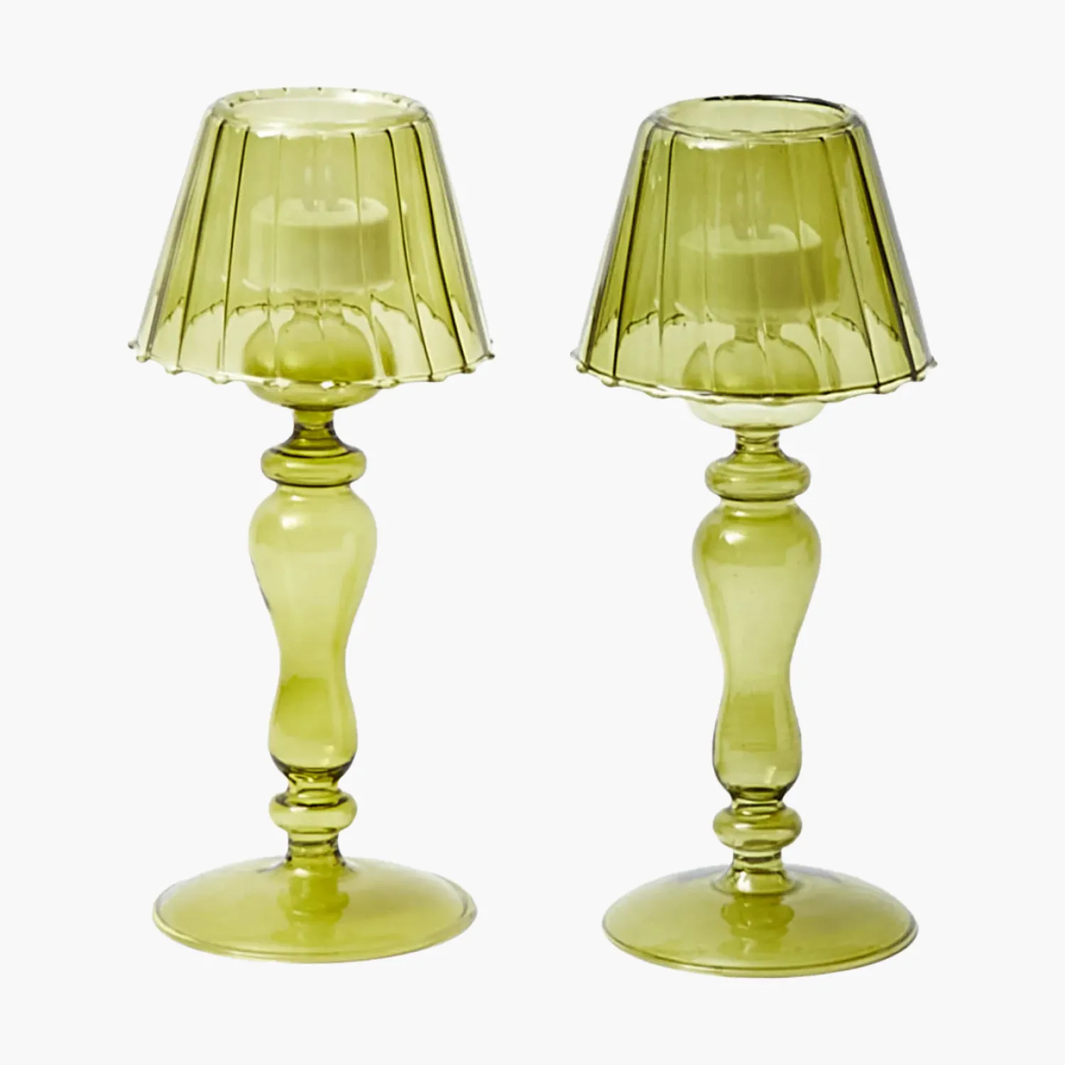 Use our chic Pair of Olive Glass Lantern Tea Light Holders to create an intimate atmosphere, perfect for date nights. Both pieces are designed in an elegant shape and will add subtle character to your tablescapes.
