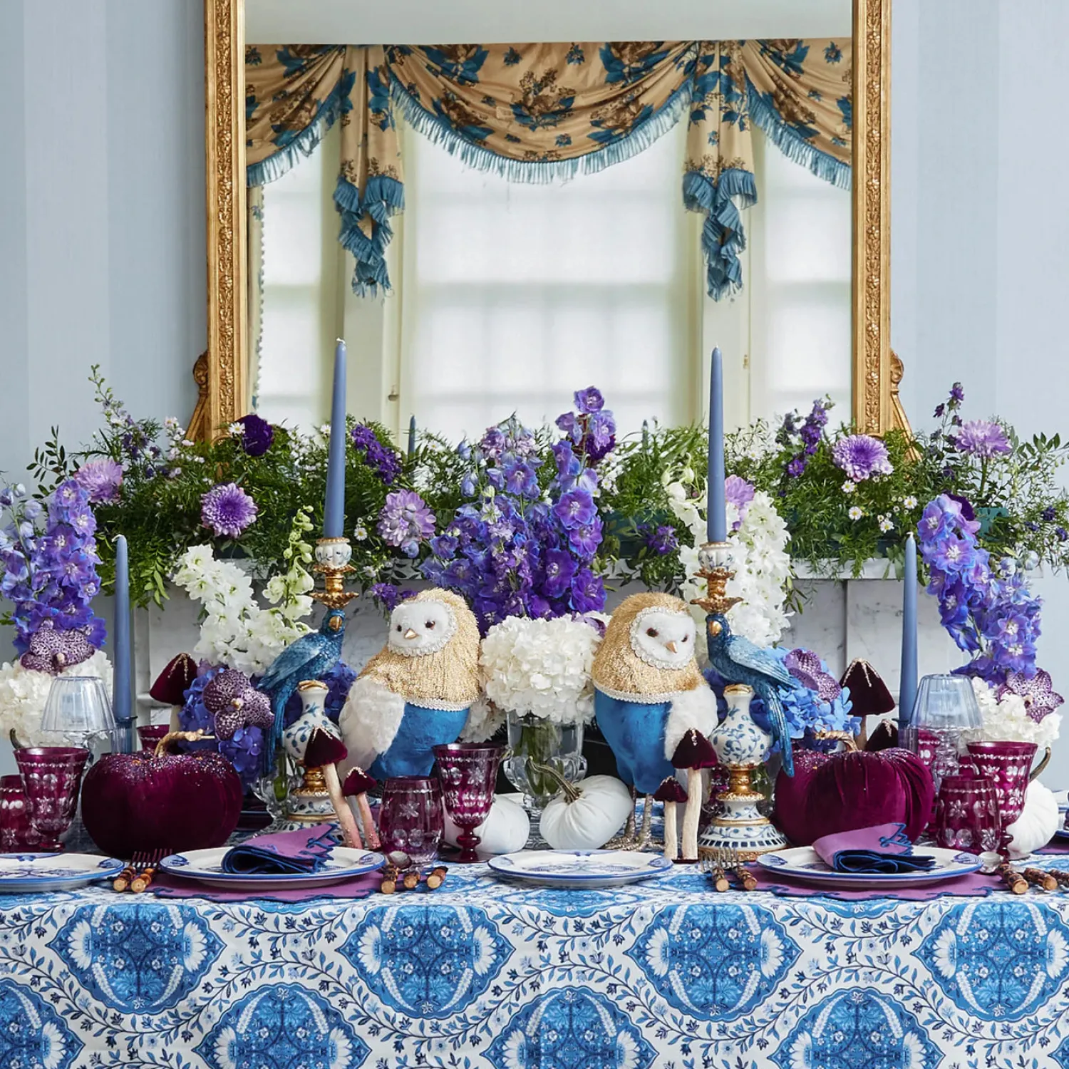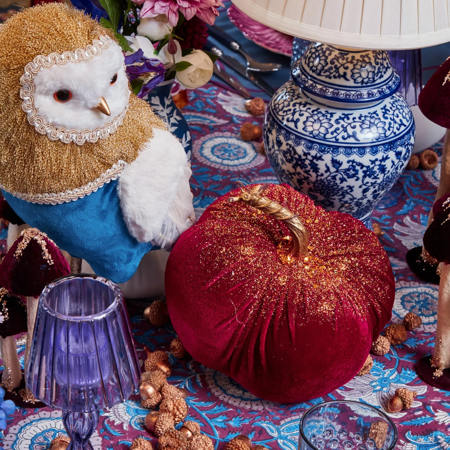 Our inquisitive Ophelia Blue & Gold Owls are a fun pair that instantly adds character to your home. Their feathered bodies are adorned with an azure chest and glittery legs – ideal decor for your special seasonal soriees.