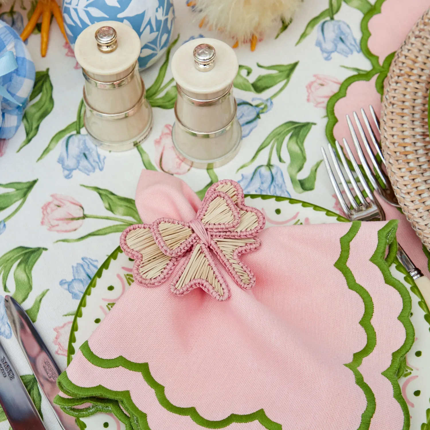 Designed in the shape of a bow and trimmed in pink, this joyful set is perfect for your Easter celebrations, or any Spring or Summer dining.