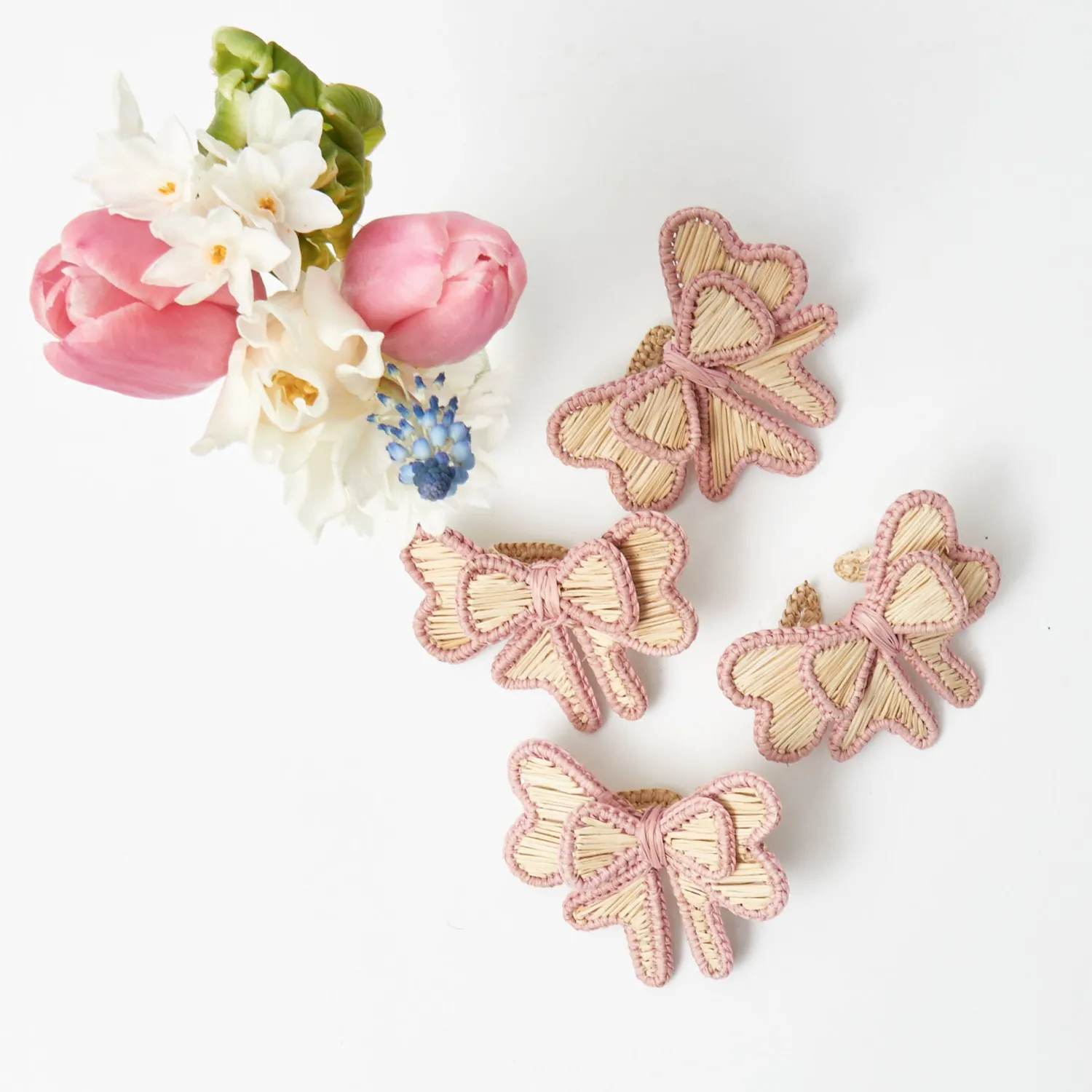 These pretty Pink Rattan Napkin Bows bring the natural beauty of wicker to your home.