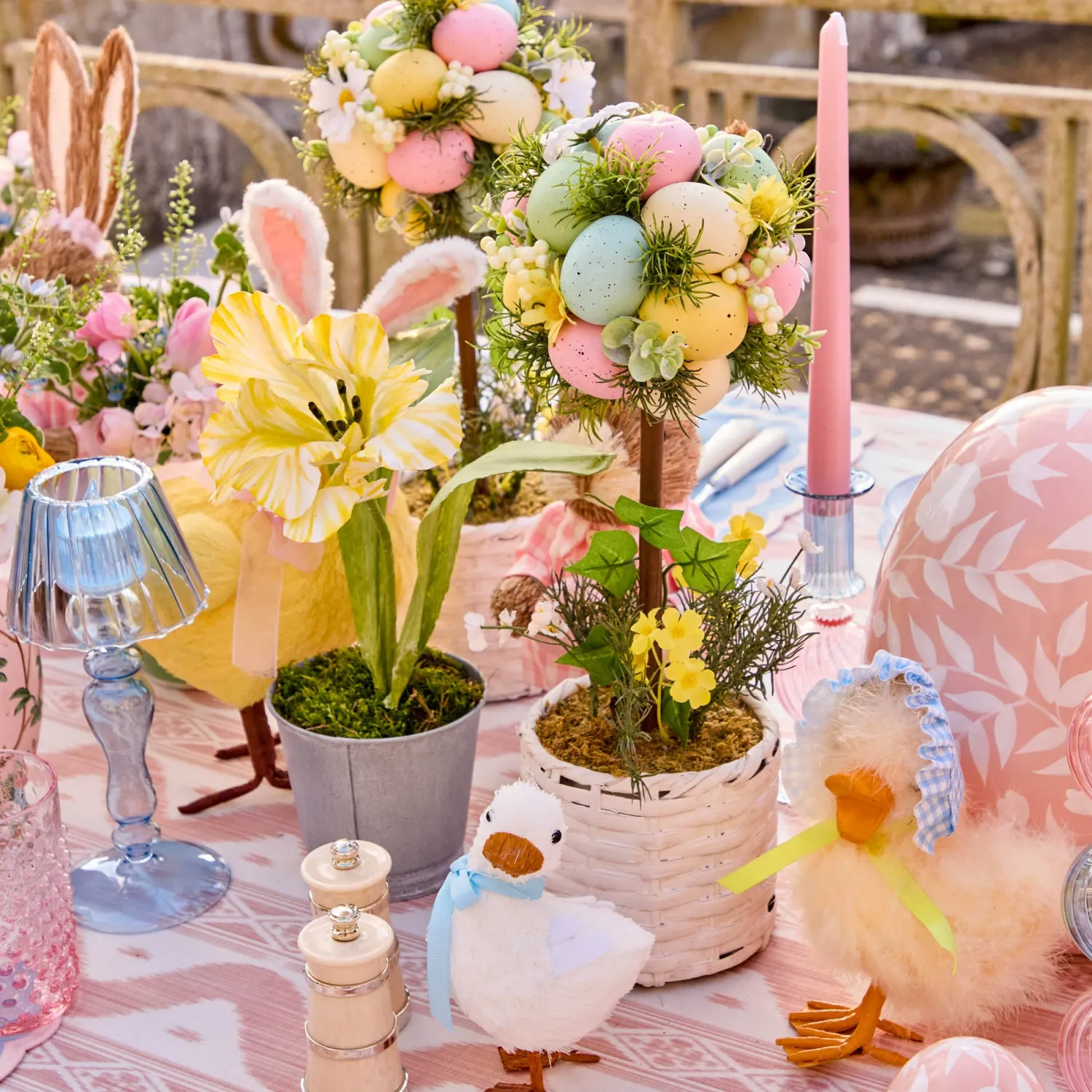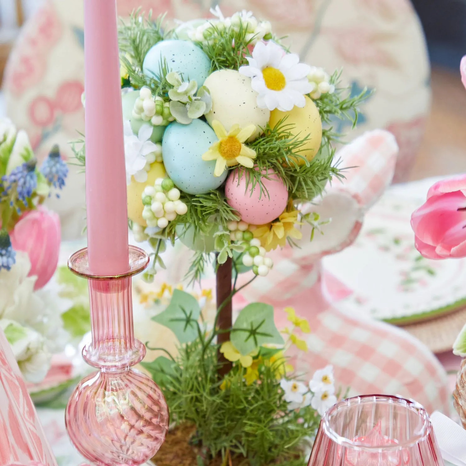 Our charming Potted Easter Egg Trees are a whimsical way to bring Easter to your home. Featuring speckled pastel eggs and a white wicker base, these Trees pair perfectly with spring tones of blue, pink, and green.