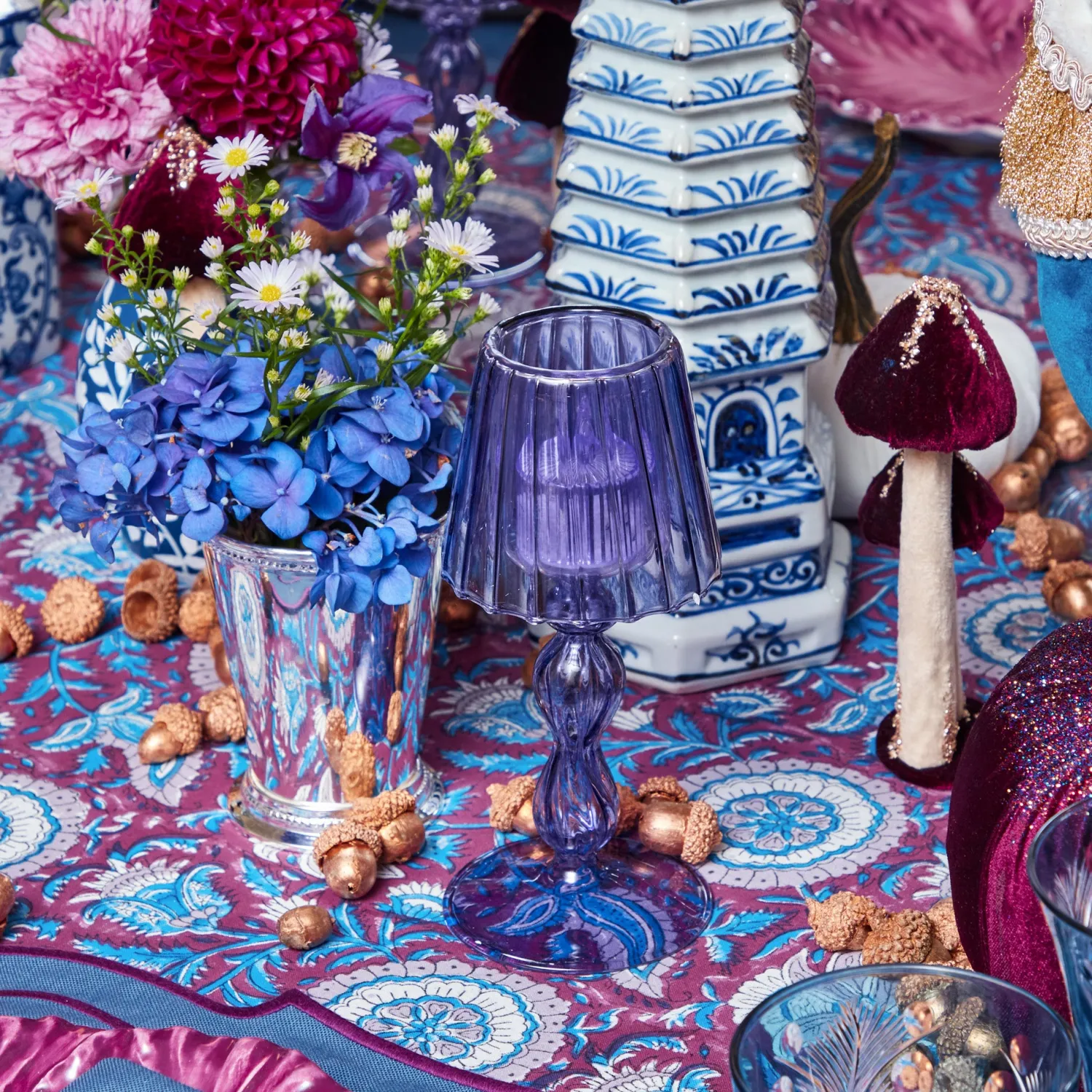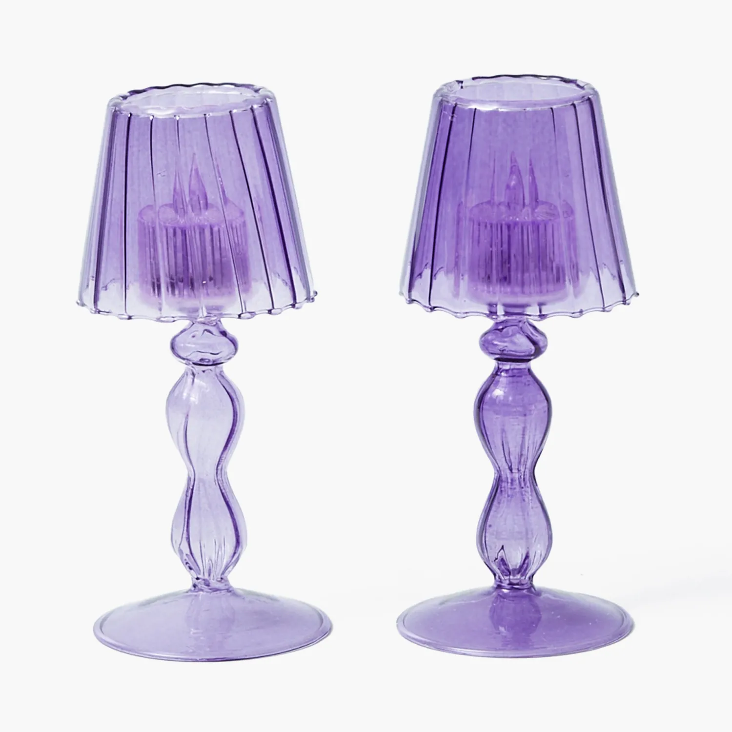 Elevate your centrepieces with low-level lighting from our Purple Glass Lantern Tea Light Holders. This decorative pair is perfect for holding faux tea lights and the real thing.