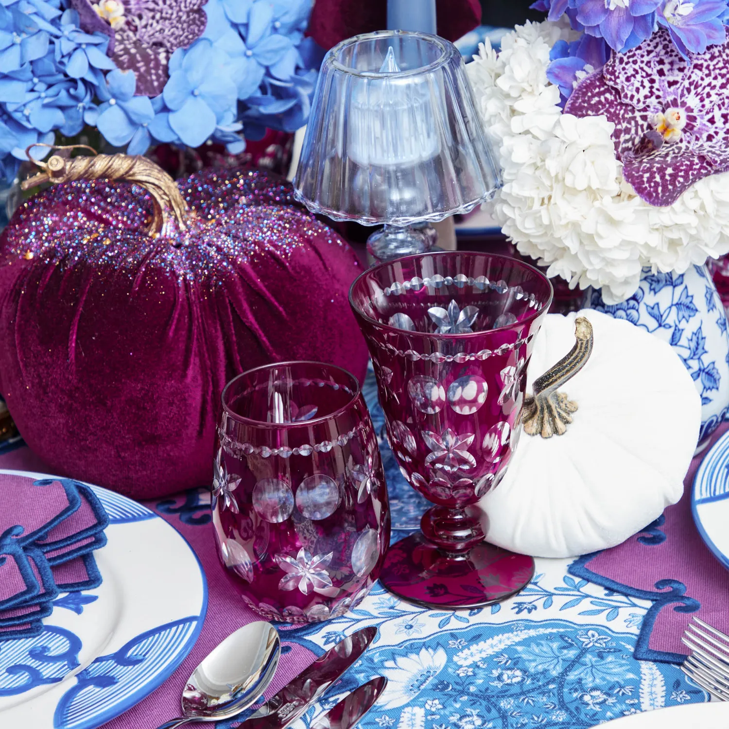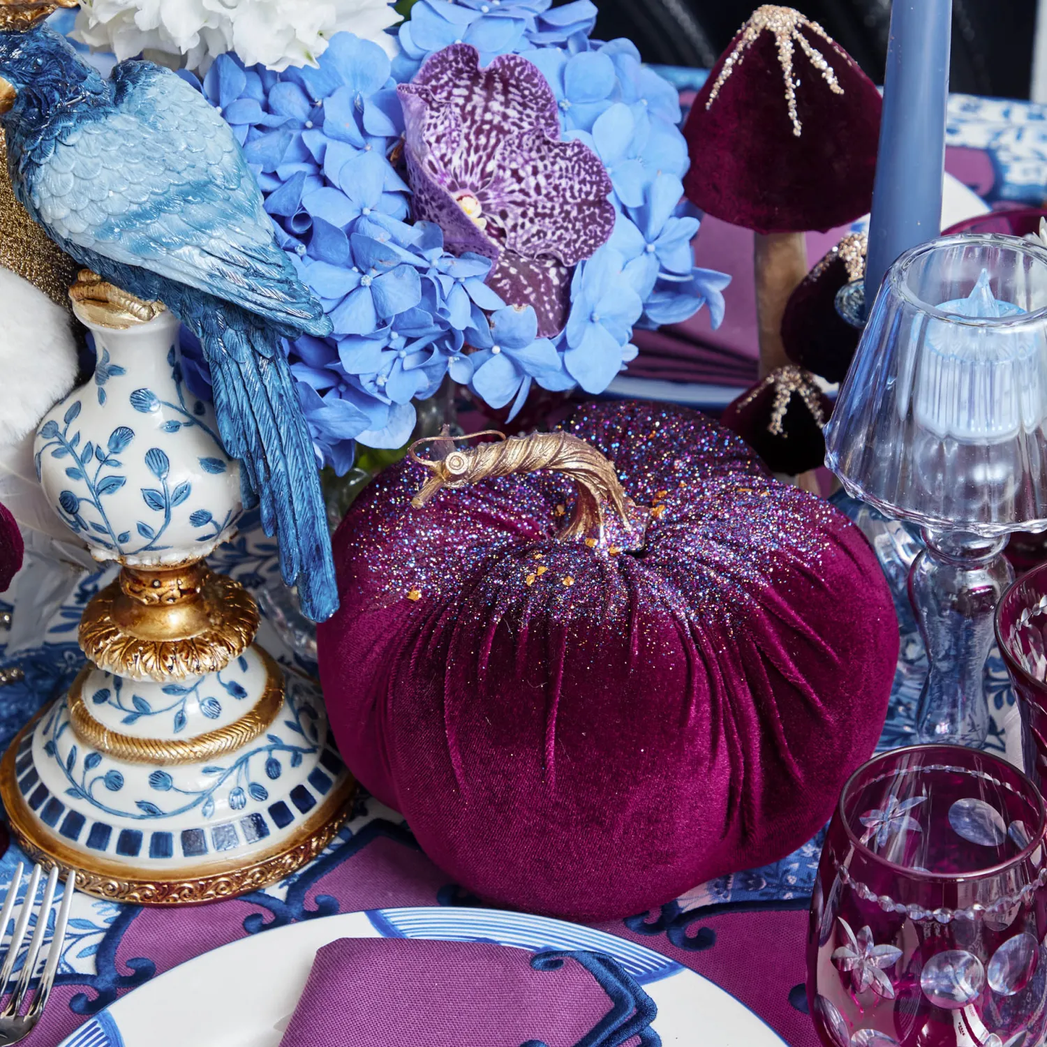 Oozing decadence and luxury, our pair of Purple Glitter Pumpkins are a special addition to any seasonal centrepiece. The plush velvet will add texture while the golden glitter looks almost magical.