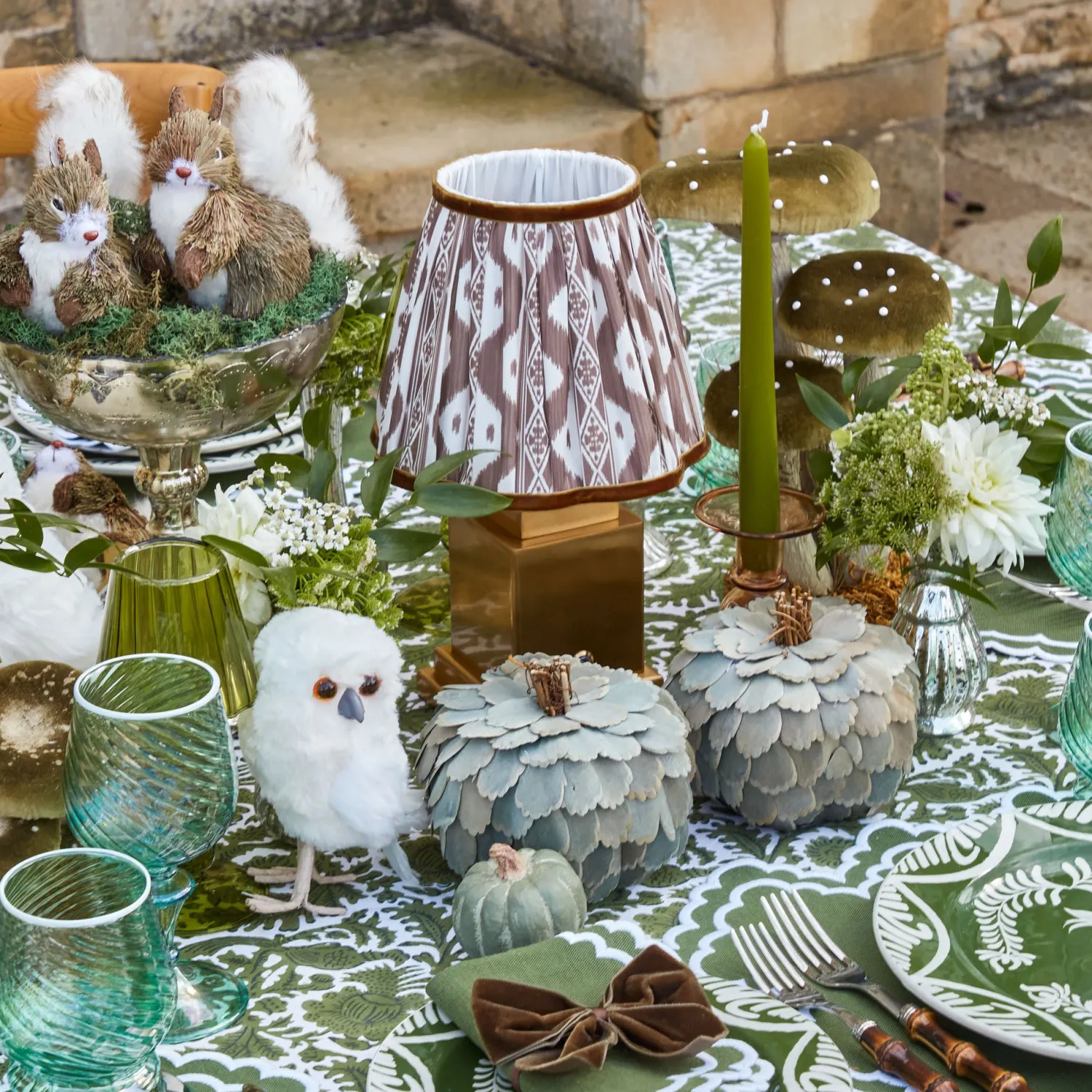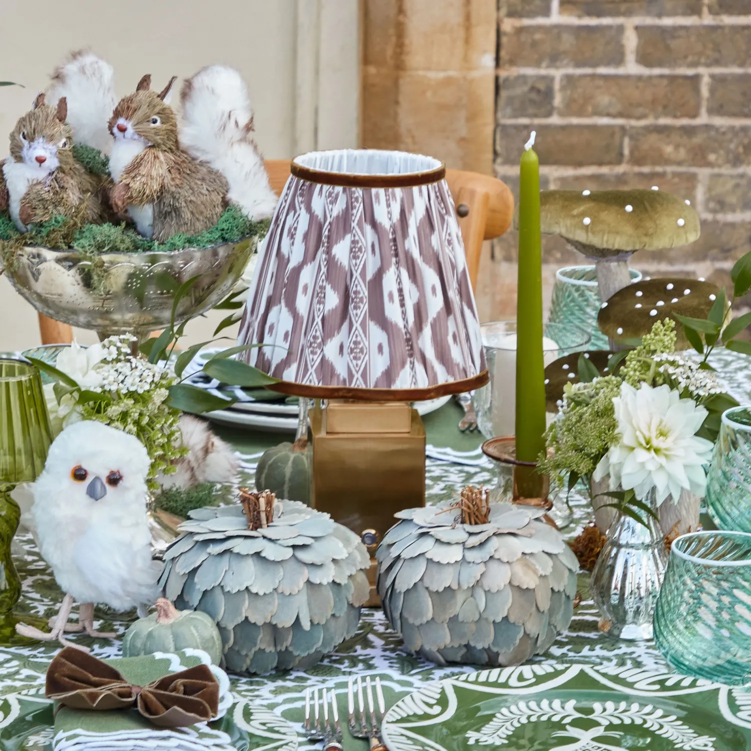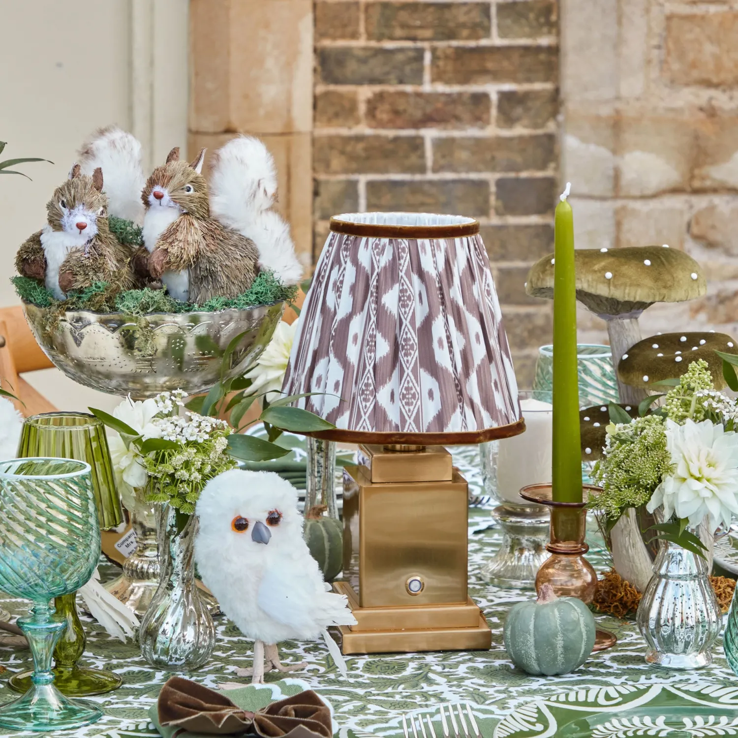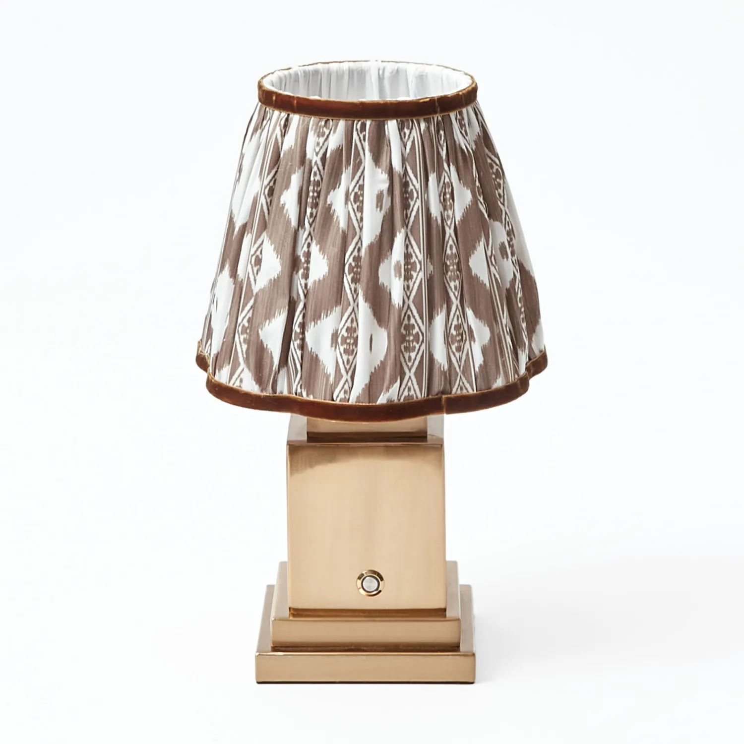 Our lovely Rechargeable Lamp with Chocolate Ikat Lampshade casts a warm glow wherever it is set upon.
