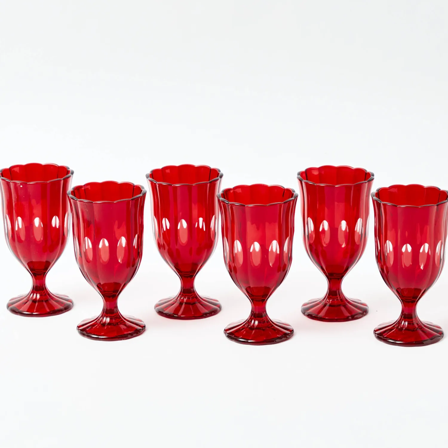 Our Red Scalloped Wine Glasses, in an exquisite set of six, are perfect for enhancing your guests’ dining experience. Ea…