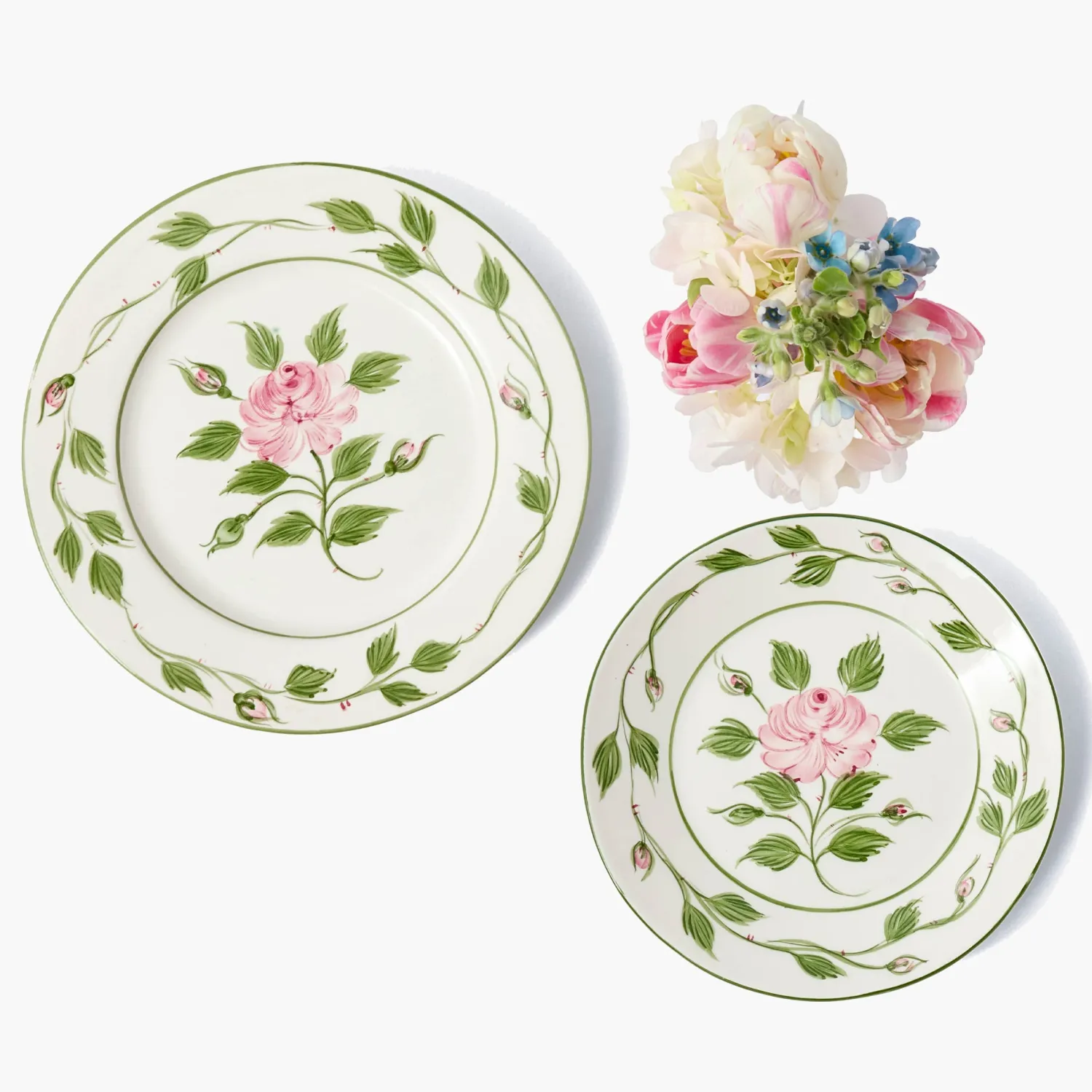 Our Rose Bud Starter Plate is a joyful piece that’s perfect for bringing spring to your table. From its graceful green botanic border to the delicately designed rose in the centre, this plate is blossoming with beauty.